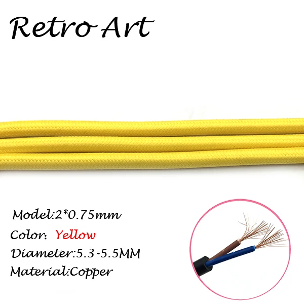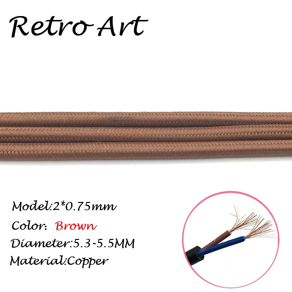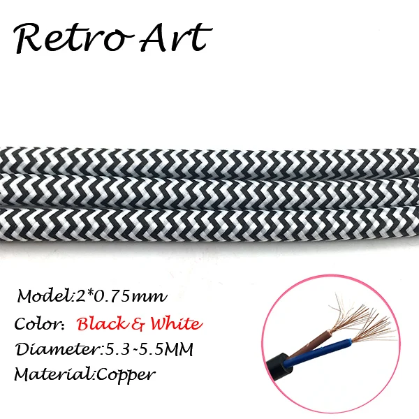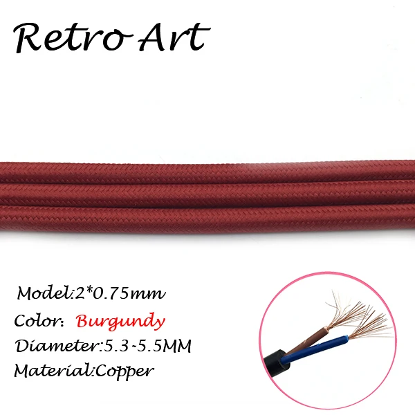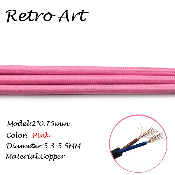 10 meters vintage Textile Electric Wire Cable Cotton retro edison style Fabric Lamp CordInformation: *Material:copper *Type: Braided cable *Diameter:5.5-5.8MM *MAX voltage:300V *MAX power:300W *Color: 16 colors available This price is for ONE COLOR 10 meters.Meanwhile all color have a name. please kindly leave a message about the colors you want , Thanks!Average rating:5 ( 0 reviews )