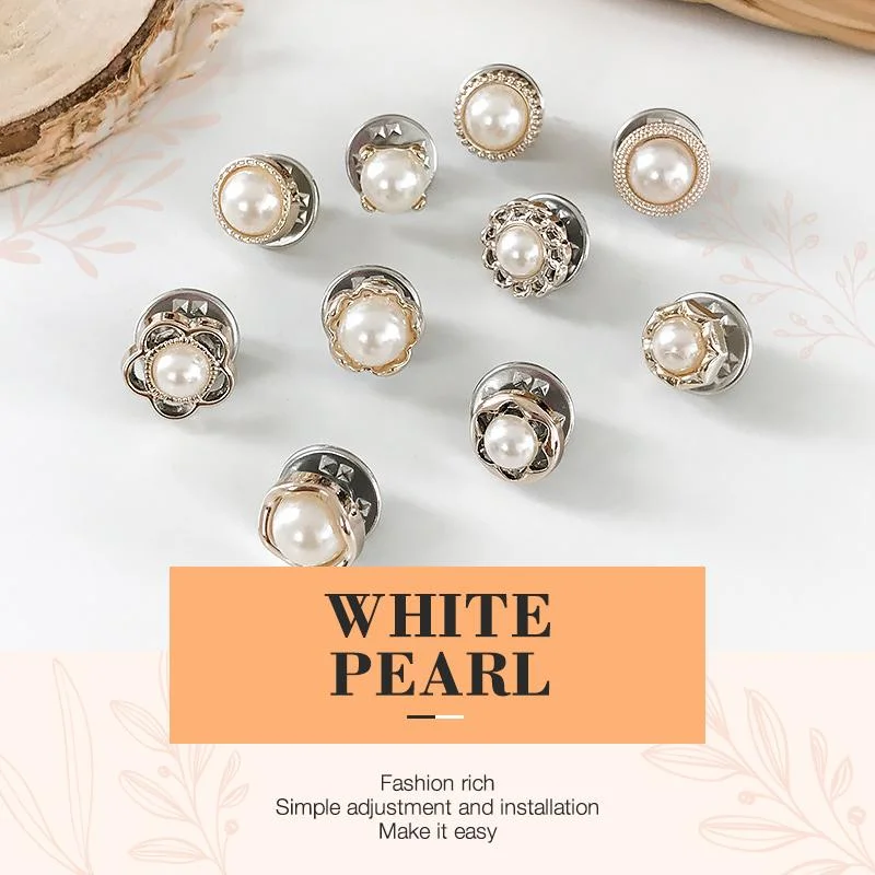 10pcs Button Brooch Set Prevent Exposure Brooches Imitation Pearl Rhinestones Pin Coat Clothes Accessories Gift for Women