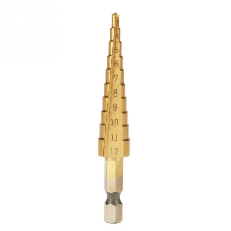 Features: 1. Made of high speed steel, hard, wearproof and durable. 2. Handle with titanium coated, reducing friction and heat. 3. Unique step structure make it possible to open various size of holes. 4. Compared with ordinary twist drill, not easy to break. 5. Ideal for cutting holes in a variety of materials including steel, bronze, aluminum and more.