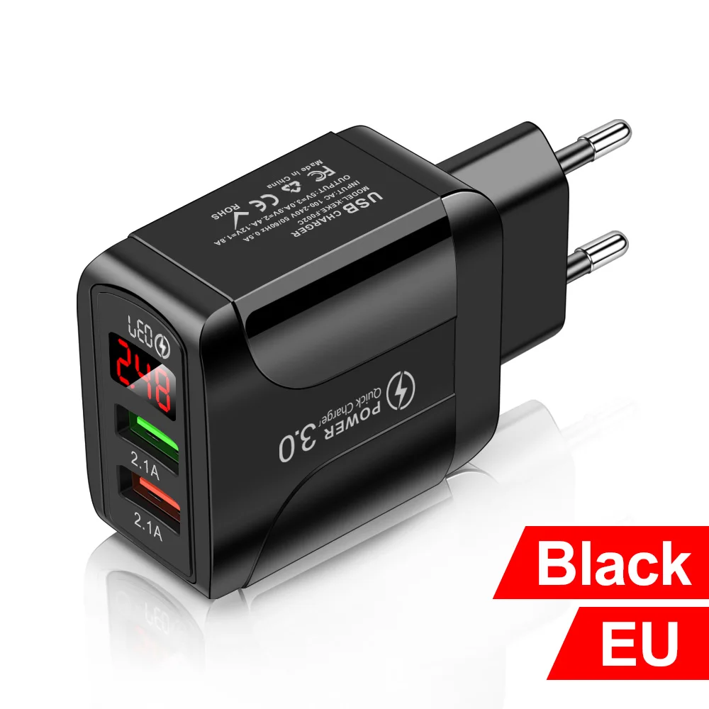 5V 2.1A Quick Charge QC 3.0 Double Port USB Digital Display Fast Charging Mobile Phone Charger EU/US/UK Universal Power Adapter|