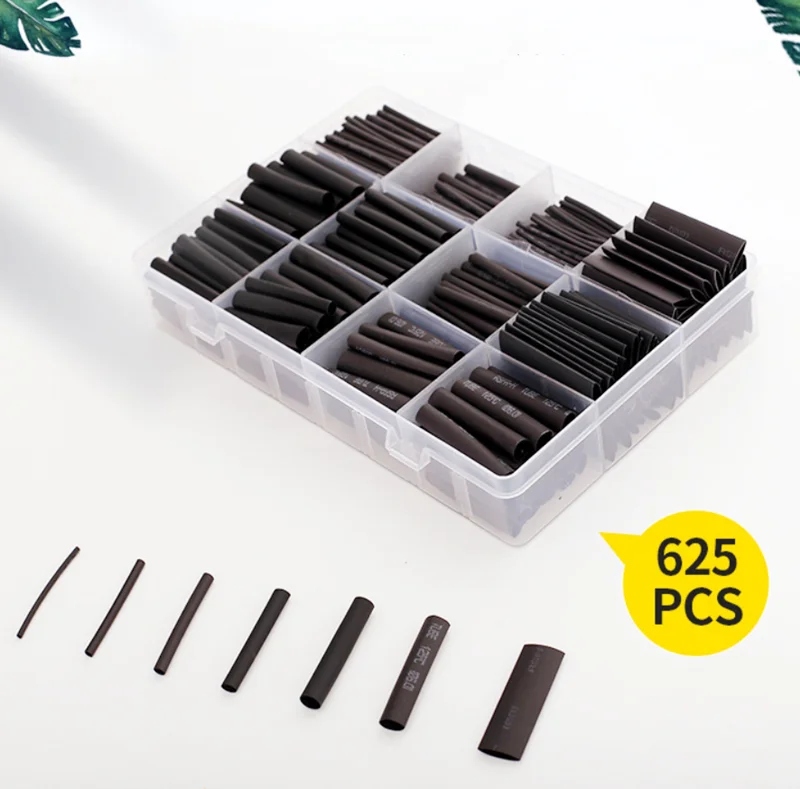 Φ1* 150pcs *40mm Φ2 *120pcs* 40mm Φ3 *100pcs* 40mm Φ4 *90pcs* 40mm Φ5 *60pcs* 40mm Φ6* 45pcs *40mm Φ8 *30pcs* 40mm Φ10 *30pcs* 40mm Performance: It has the functions of high temperature shrinkage, soft flame retardant and insulation corrosion prevention. It is widely used in insulation protection of wire harness, solder joint and inductor, antirust and anti-corrosion of metal tube and rod. The voltage level is 600V. With the temperature from low to high, the polymer materials will go through the glass state high elastic state. The performance of the glass state is close to that of the plastic, and the performance of the high elastic state is close to that of the rubber. The material used in heat shrinkable tube is glass state at room temperature, and becomes high elastic state after heating. use: During production, the heat shrinkable tube is heated to a high elastic state, and then the heat shrinkable tube is applied with a load to expand. Under the condition of maintaining the expansion, the heat shrinkable tube is cooled rapidly to enter the glass state, and this state is fixed. When it is used, it will return to the high elastic state when heated, but when the load is gone, it will retract. Shrinkage ratio: 2:1 Shrinkage temperature: 84 ℃~ 120 ℃ Working temperature: - 55 ℃~ 125 ℃ Fire rating: VW-1