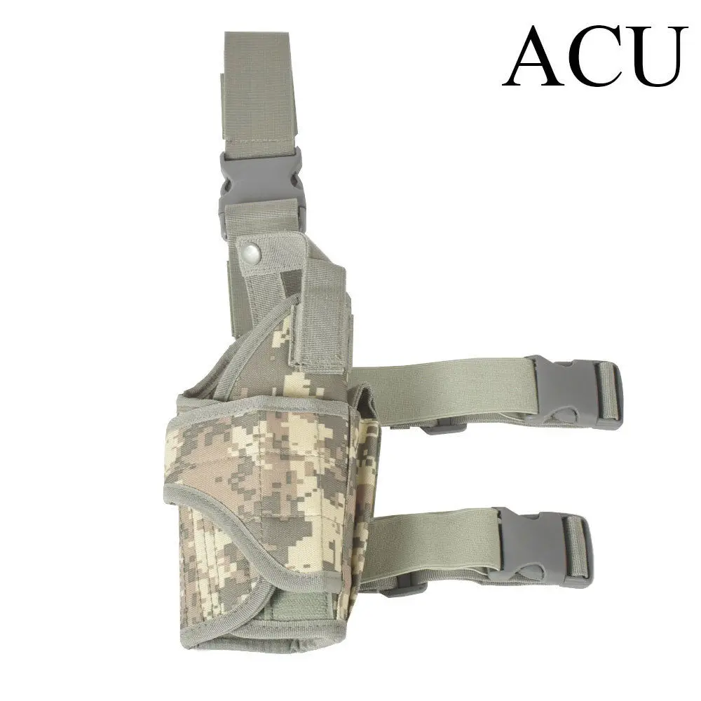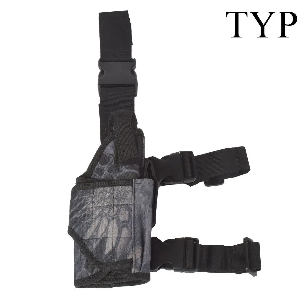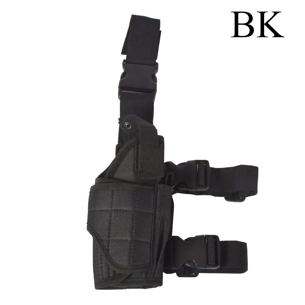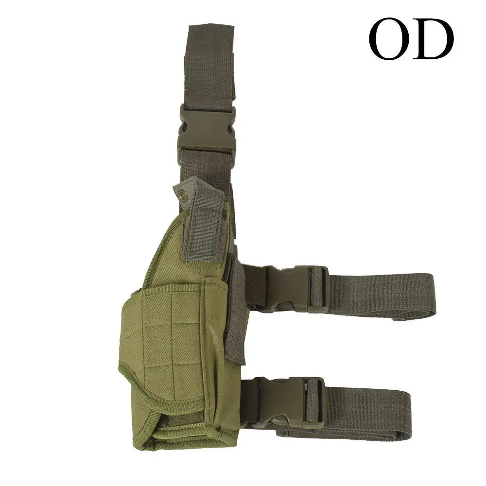 This universal holster will fit virtually any handgun. The system wraps around the pistol creating the perfect fit and tensioned to the users specifications. Rubberized leg straps prevent slipping. Integrated Mag pouch includes an adjustable strap to secure a pistol mag, Tac-light or knife. Right handed only. Name: Drop Leg Pistol Holster * Condition: 100% New * Dimension: approx.5cm x 12cm x 20.5cm (L x W x H) * All Durable Nylon Constructed * Retention system with additional velcro strap to secure weapon. * Fully adjustable leg strap with non-slip rubber lining and quick release buckle. * One mag pouch with adjustable velcro strap * Fits most of pistols