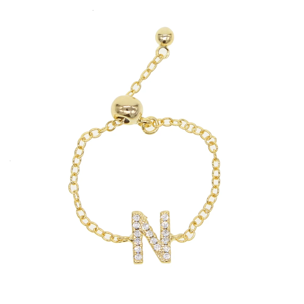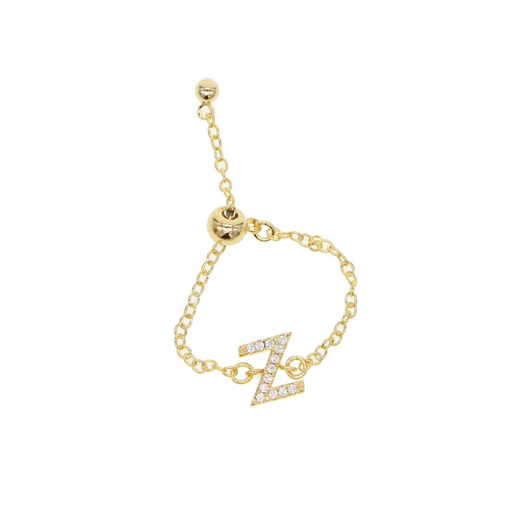 Alphebet charm cute micro pave cz letters top quality link chain meanning latest design gold minimal chain ring|Engagement Ring  432865042363