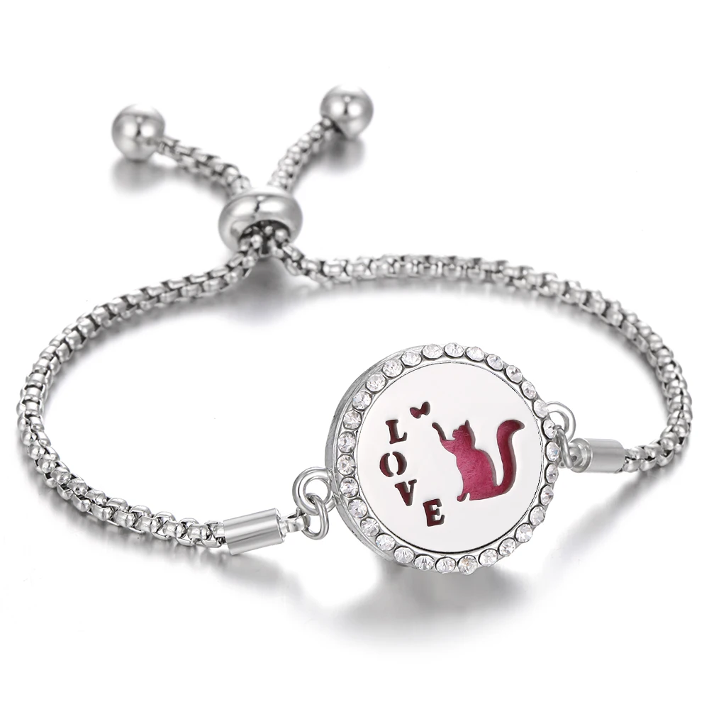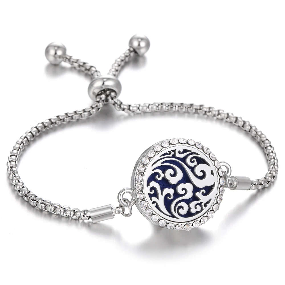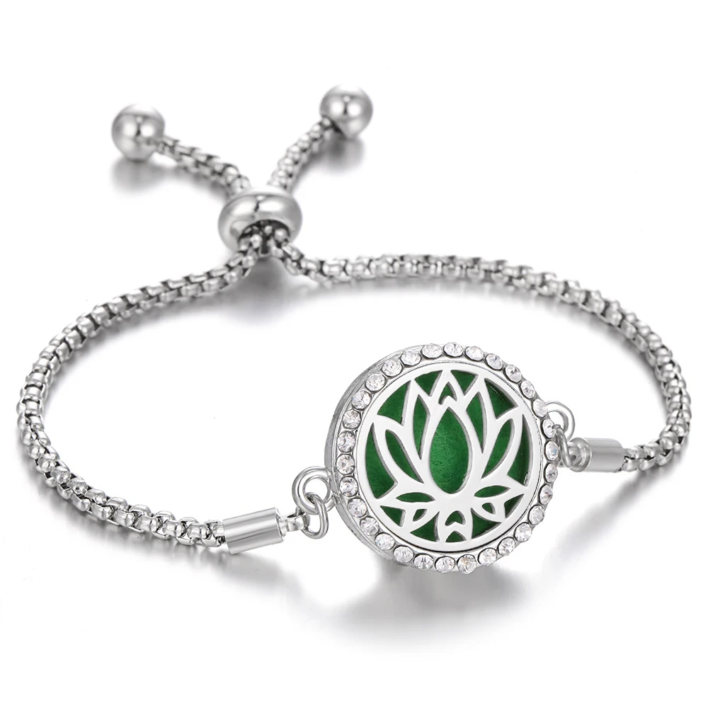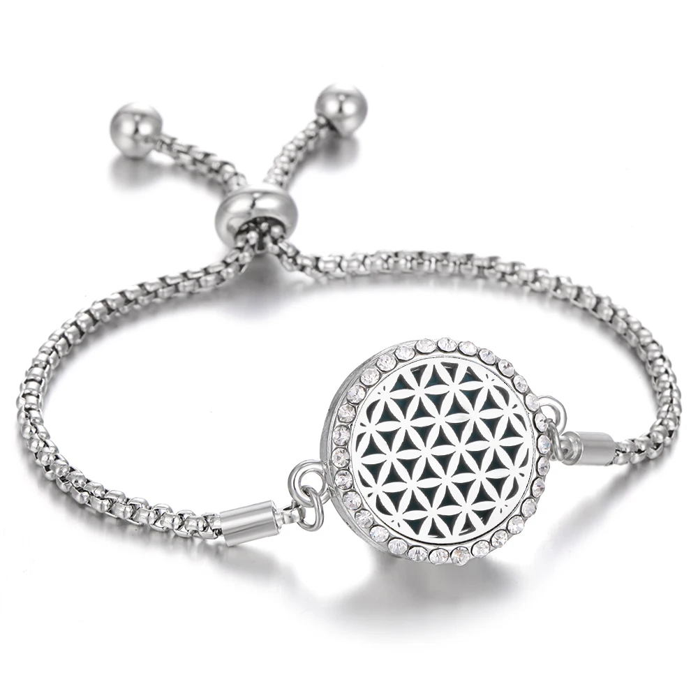 Aromatherapy Bracelet Diffuser Locket Tree of Life Adjustable Perfume Essential Oil Diffuser Bracelet Crystal Magnetic for Women  44000552584005