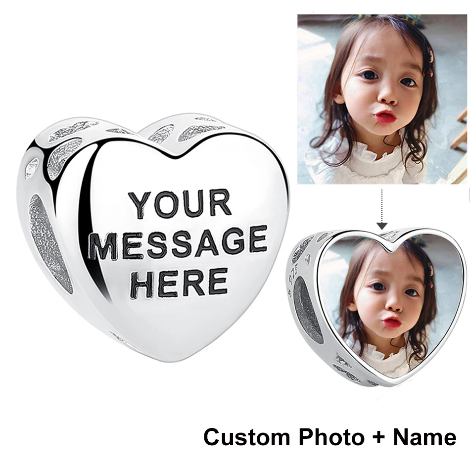 Authentic 925 Sterling Silver Openwork Heart Charms Beads Fit Bracelet Necklace DIY Custom Photo Personalized Jewelry|Customized  432975576165