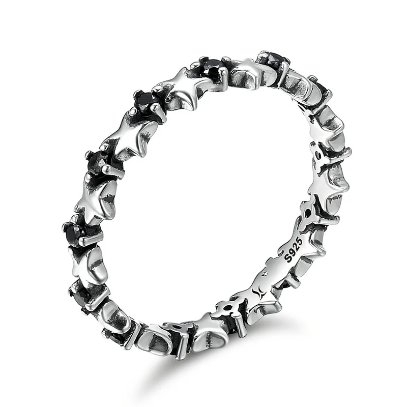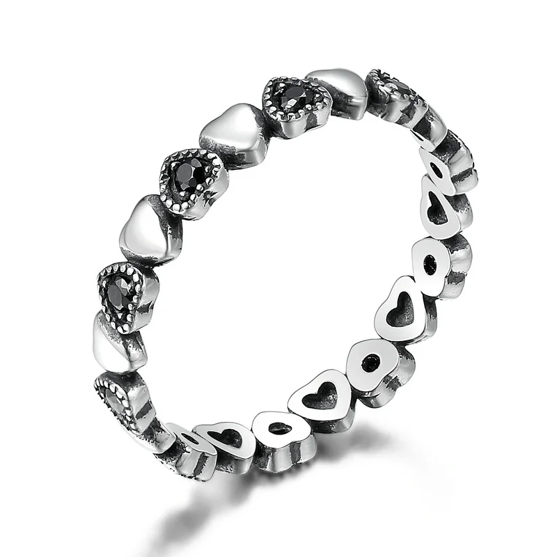 BAMOER auténtico anillo apilable de plata de ley 925 estrella corazón negro CZ anillo de dedo mujeres joyería de plata esterlina