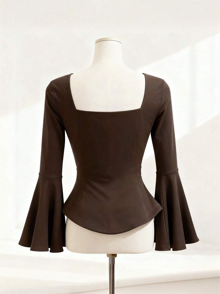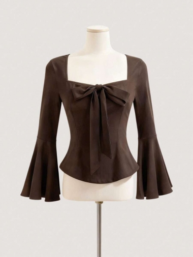 Details:Bow Body:Unlined Neckline:Square Neck Pattern Type:Plain Sleeve Type:Flare Sleeve Style:Casual Occasion:Office Hem Shaped:Regular Lined For Added Warmth:No Pockets:No Festivals:Oktoberfest in Munich Color:Brown Sleeve Length:Long Sleeve Length:Regular Fit Type:Slim Fit Sheer:No Fabric Elasticity:Medium Stretch Material:Knitted Fabric Composition:95% Polyester, 5% Elastane Care Instructions:Machine wash or professional dry clean Chest pad:No Belt:No |