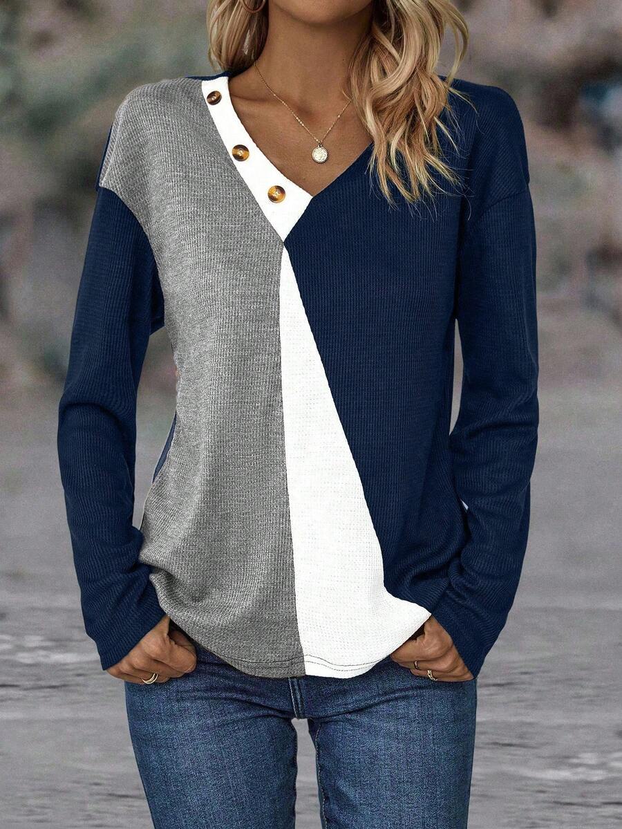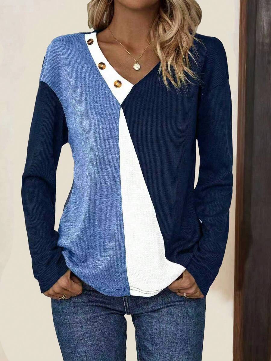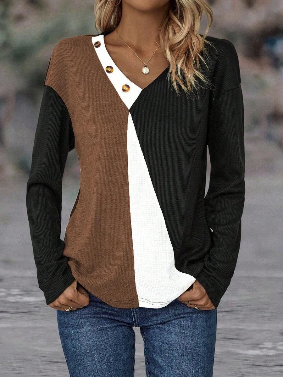 Body:Unlined Pattern Type:Colorblock Sleeve Type:Drop Shoulder Hem Shaped:Regular Lined For Added Warmth:No Festivals:Independence Day Color:Multicolor Details:Fake Buttons, Button Style:Casual Occasion:Daily Neckline:V neck Sleeve Length:Long Sleeve Length:Regular Fit Type:Regular Fit Fabric Elasticity:Slight Stretch Material:Fabric Composition:95% Polyester, 5% Elastane Care Instructions:Machine wash or professional dry clean Sheer:No |