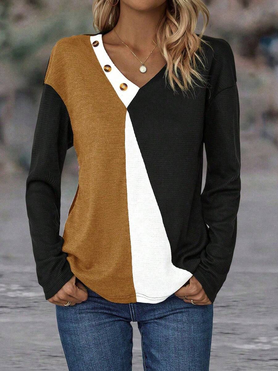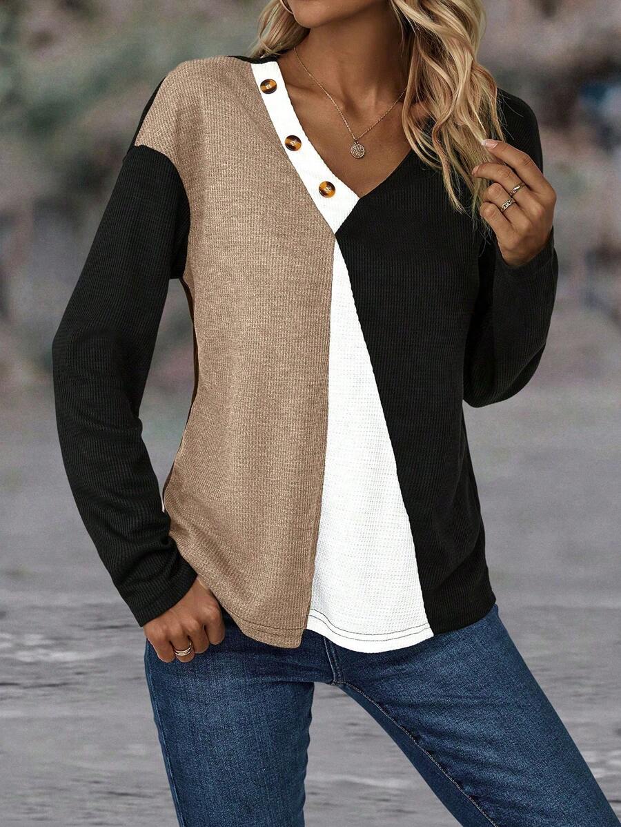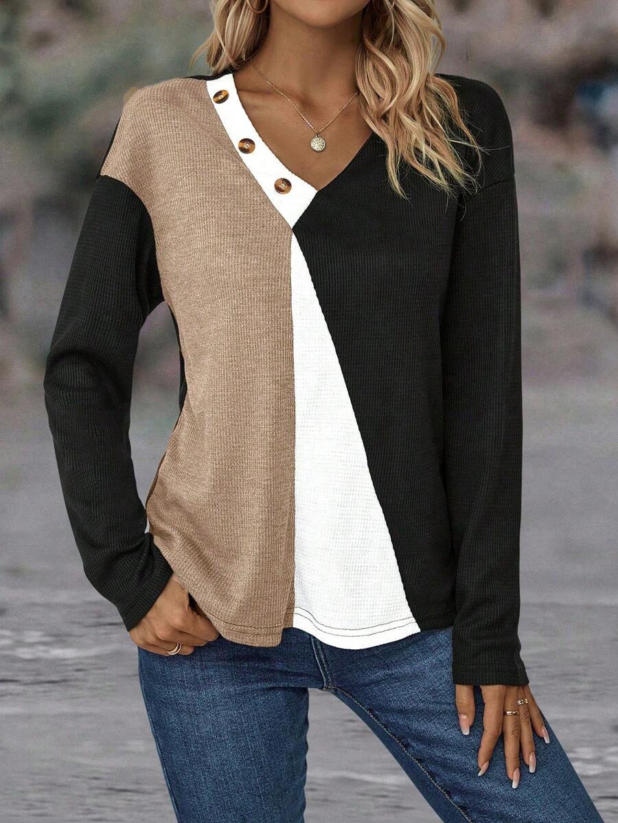 Body:Unlined Pattern Type:Colorblock Sleeve Type:Drop Shoulder Hem Shaped:Regular Lined For Added Warmth:No Festivals:Independence Day Color:Multicolor Details:Fake Buttons, Button Style:Casual Occasion:Daily Neckline:V neck Sleeve Length:Long Sleeve Length:Regular Fit Type:Regular Fit Fabric Elasticity:Slight Stretch Material:Fabric Composition:95% Polyester, 5% Elastane Care Instructions:Machine wash or professional dry clean Sheer:No |