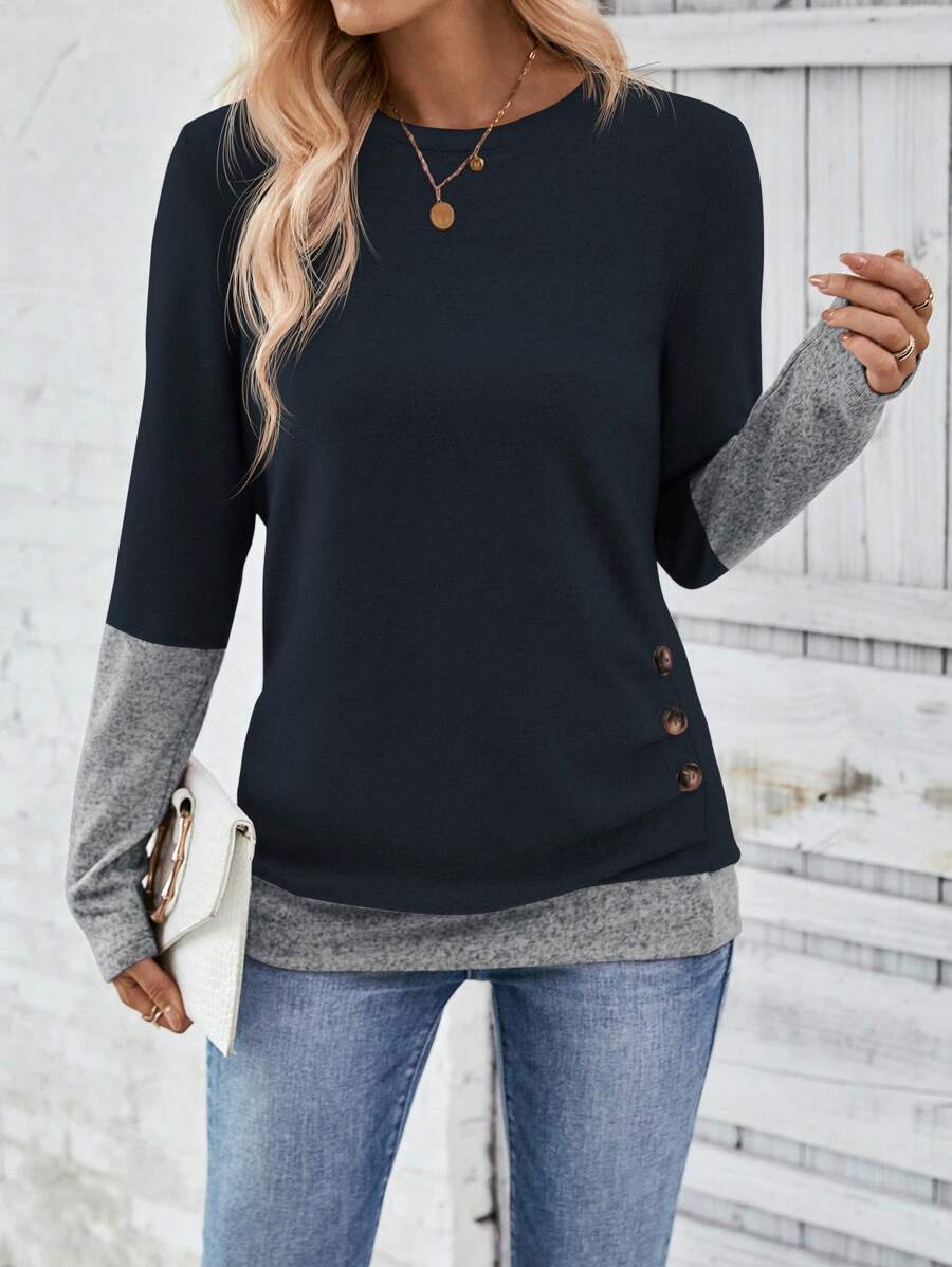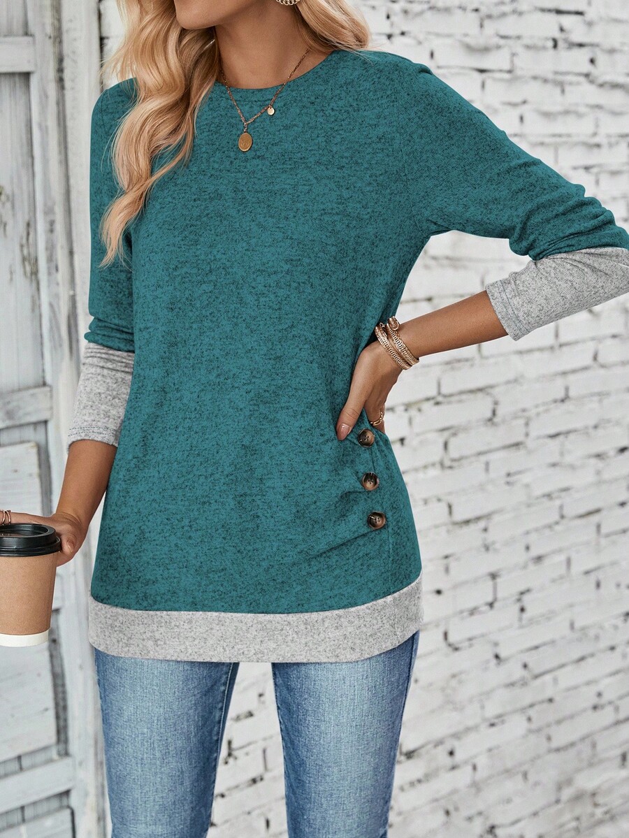 Body:Unlined Pattern Type:Plain Sleeve Type:Regular Sleeve Hem Shaped:Regular Lined For Added Warmth:No Festivals:Halloween Color:Teal Blue Details:Fake Buttons, Button, Split Style:Casual Occasion:Daily Neckline:Round Neck Sleeve Length:Long Sleeve Length:Long Fit Type:Regular Fit Fabric Elasticity:Medium Stretch Material:Knitted Fabric Composition:95% Polyester, 5% Elastane Care Instructions:Machine wash or professional dry clean Sheer:No |