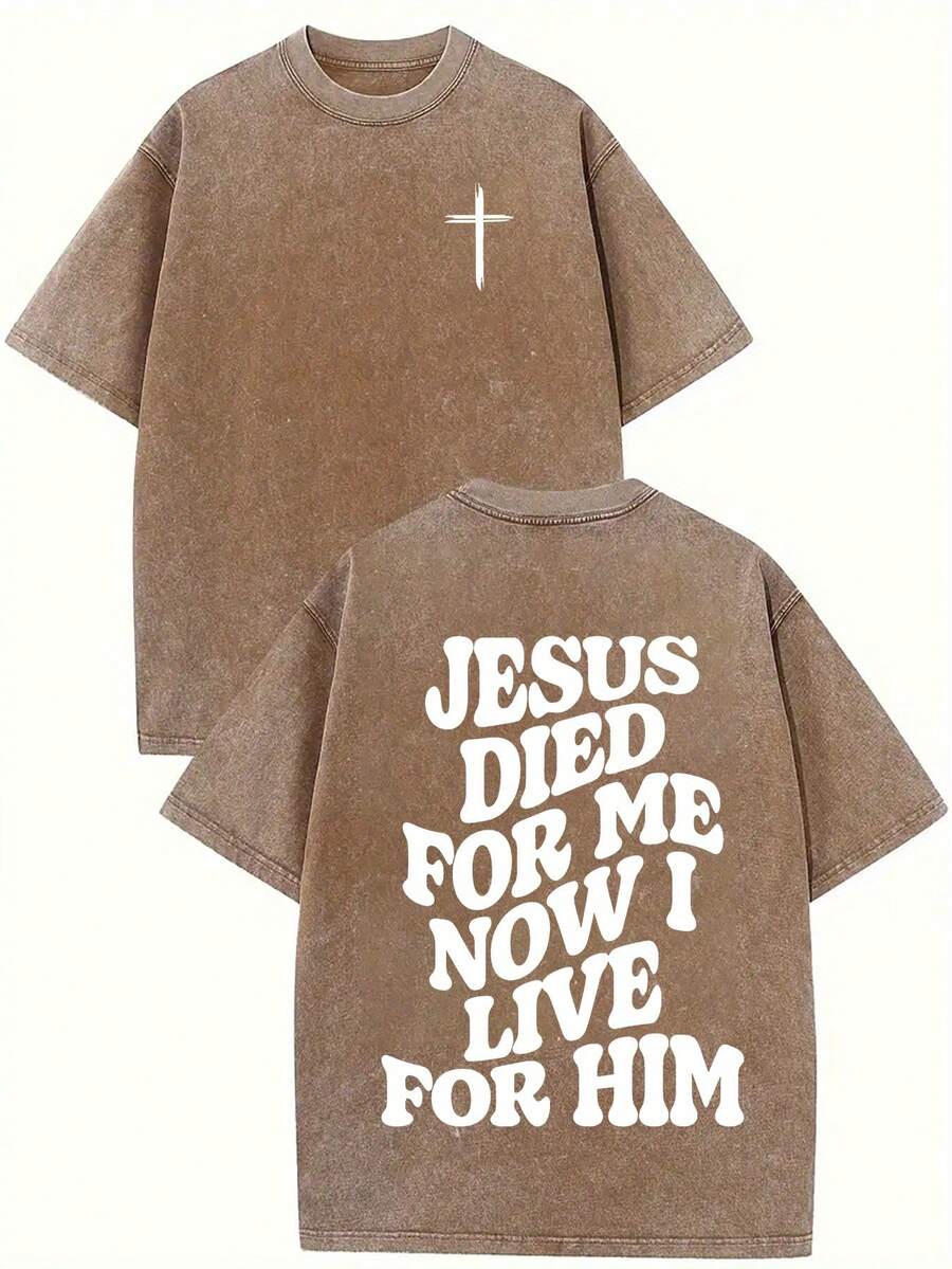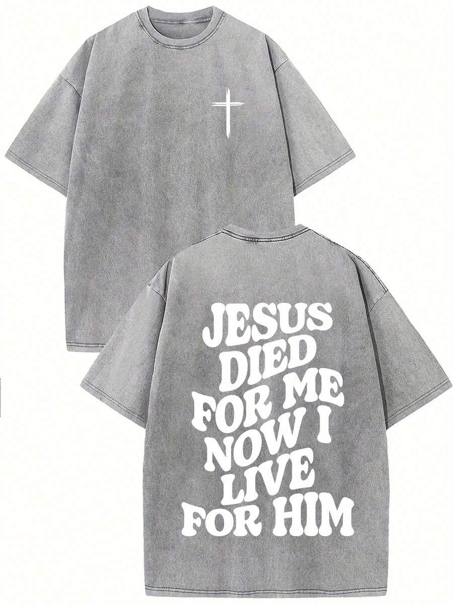 Jesus Died For Me, And Now I Live For Him. Printed Oversized Cotton Solid Color Drop Shoulder T-Shirt, Suitable For Women, Vinta  25070926635523329