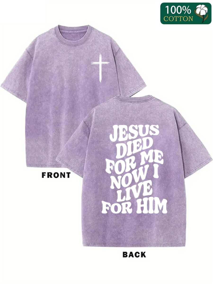 • Jesus Died For Me, And Now I Live For Him. Printed Oversized Cotton Solid Color Drop Shoulder T-Shirt, Suitable For Women, Vinta