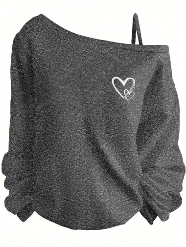 Body:Unlined Pattern Type:Graphic Sleeve Type:Regular Sleeve Hem Shaped:Regular Lined For Added Warmth:No Pockets:No Color:Dark Grey Details:Asymmetrical Style:Casual Occasion:Daily Neckline:Asymmetrical Neck Sleeve Length:Long Sleeve Length:Regular Fit Type:Regular Fit Fabric Elasticity:Slight Stretch Material:Knitted Fabric Composition:95% Polyester, 5% Elastane Care Instructions:Machine wash or professional dry clean Sheer:No |