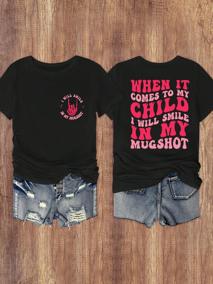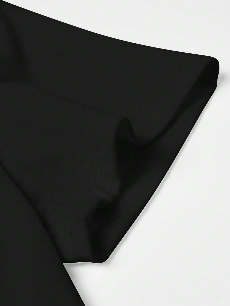 Body:Unlined Pattern Type:Colorblock, Letter, Slogan Sleeve Type:Regular Sleeve Hem Shaped:Regular Lined For Added Warmth:No Festivals:Halloween Color:Black Style:Casual Neckline:Round Neck Sleeve Length:Short Sleeve Length:Regular Fit Type:Regular Fit Fabric Elasticity:Slight Stretch Material:Fabric Composition:94% Polyester, 6% Elastane Care Instructions:Machine wash, do not dry clean Sheer:No |