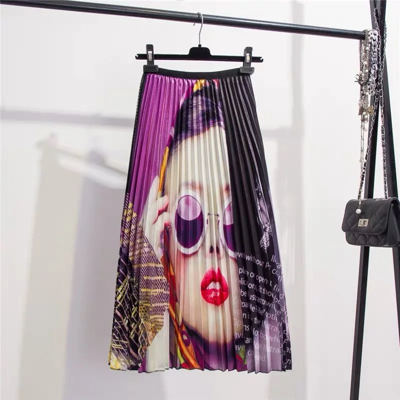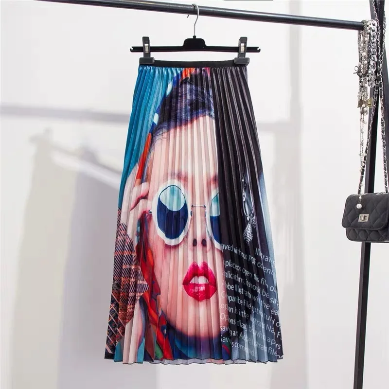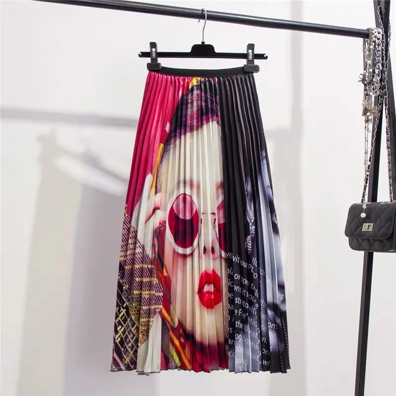 Marwin 2019 Spring Summer New-Coming Europen Printing Patchwork Pattern High Elasticity Pleated High Street Style Women Skirts  632987440638