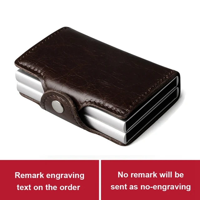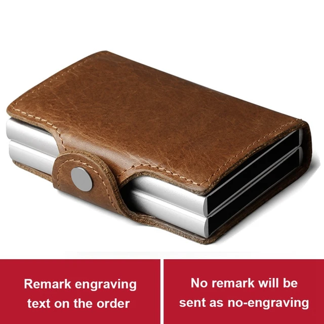 Men double Aluminum 100% Genuine Leather Credit Card Holder RFID Metal Wallet Automatic pop up Anti-theft Purse ID Cardholder  633010407193