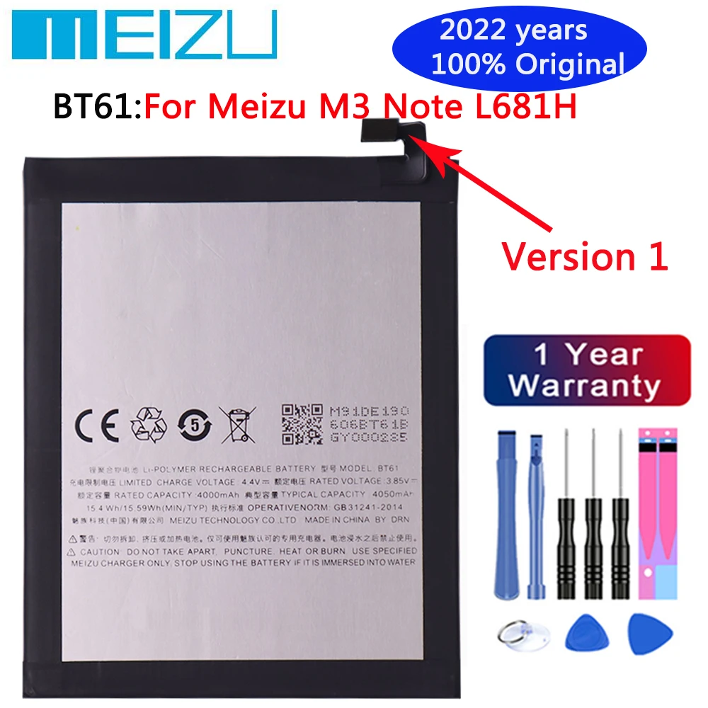 Product Info Brand : For Meizu Product attributes : 100% Original Genuine Battery Model : BT15 Battery capacity : 3020mAh Compatible with : For Meizu M3S Battery Model : BT61 Battery capacity : 4000mAh Compatible with : For Meizu L Version M3 Note L681H Battery Model : BU10 Battery capacity : 2760mAh Compatible with : For Meizu BU10