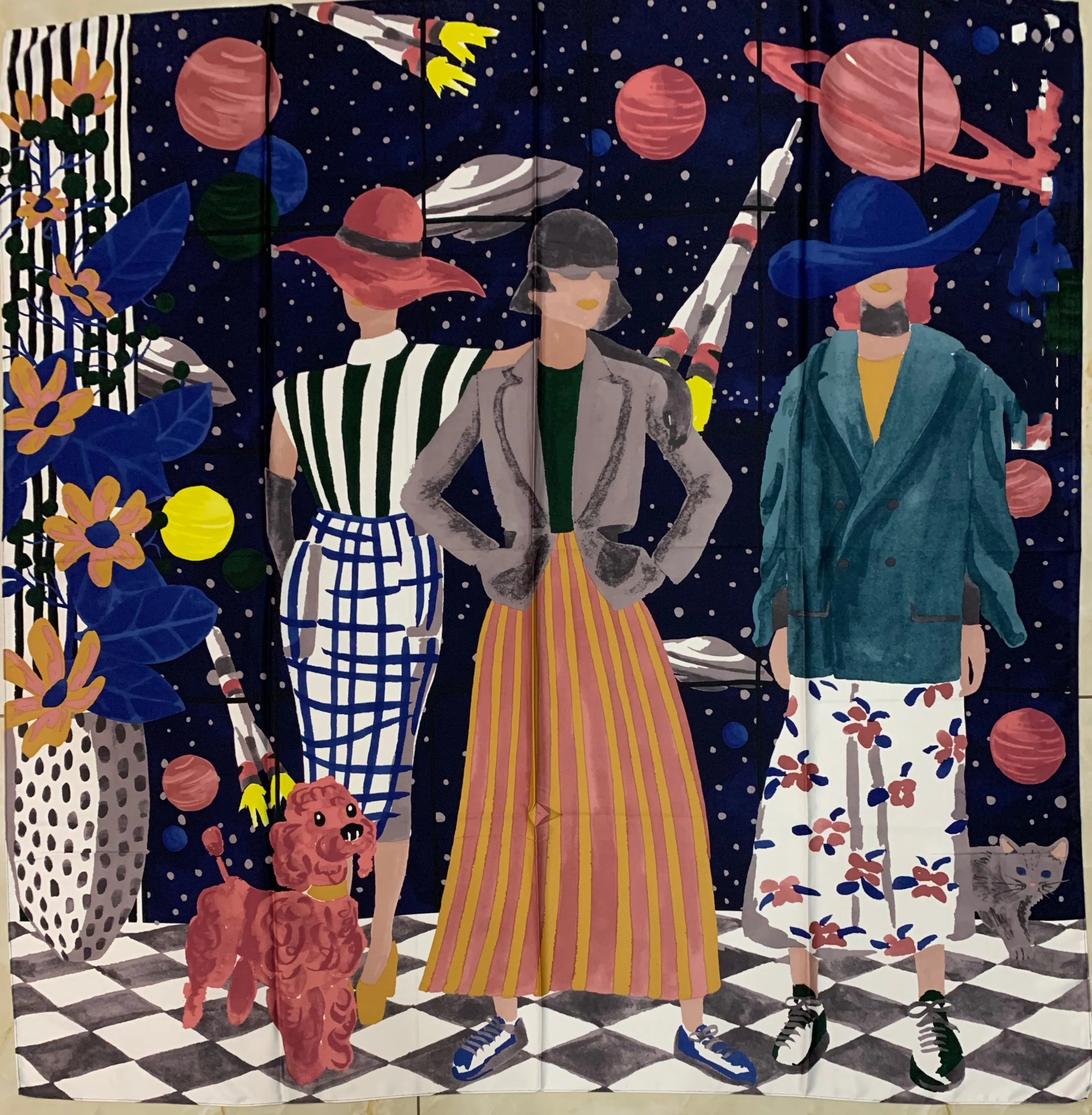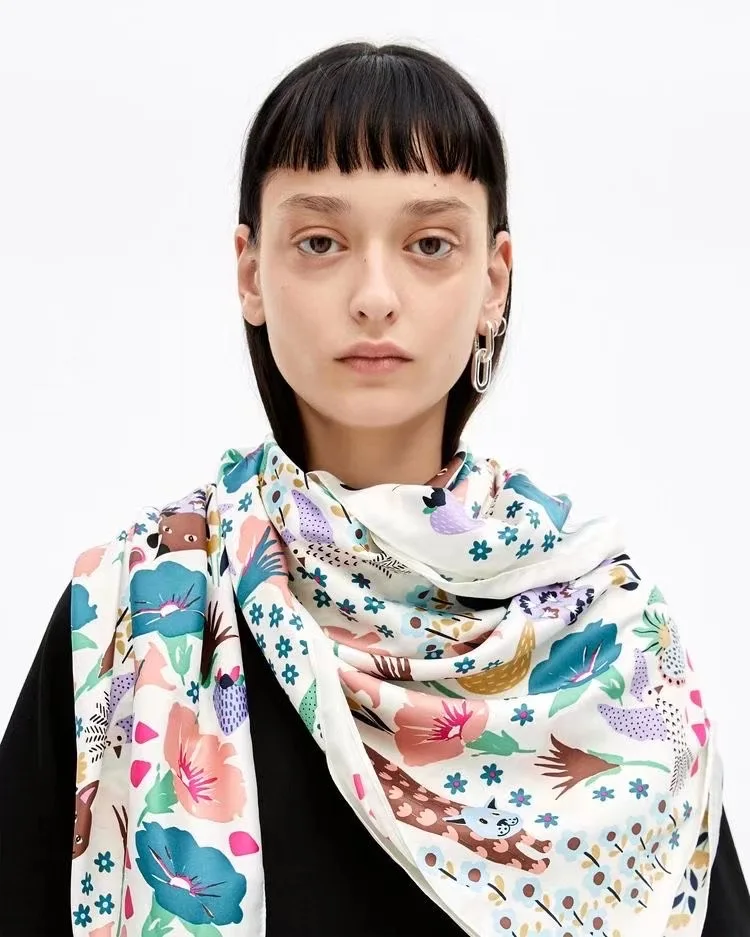 New lady's printed silk scarf multi-function scarf with beach towel Size: 120*120