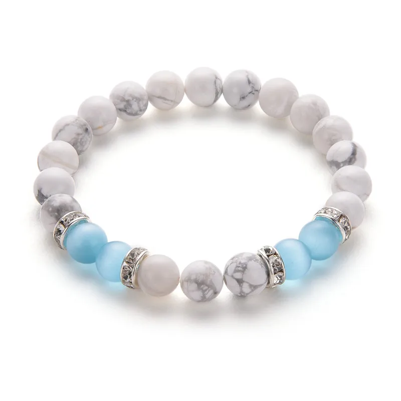 Poshfeel 8mm White And Pink Stone Beads Bracelets & Bangles Crystal Charm Bracelets For Women Mbr170430  632834180475