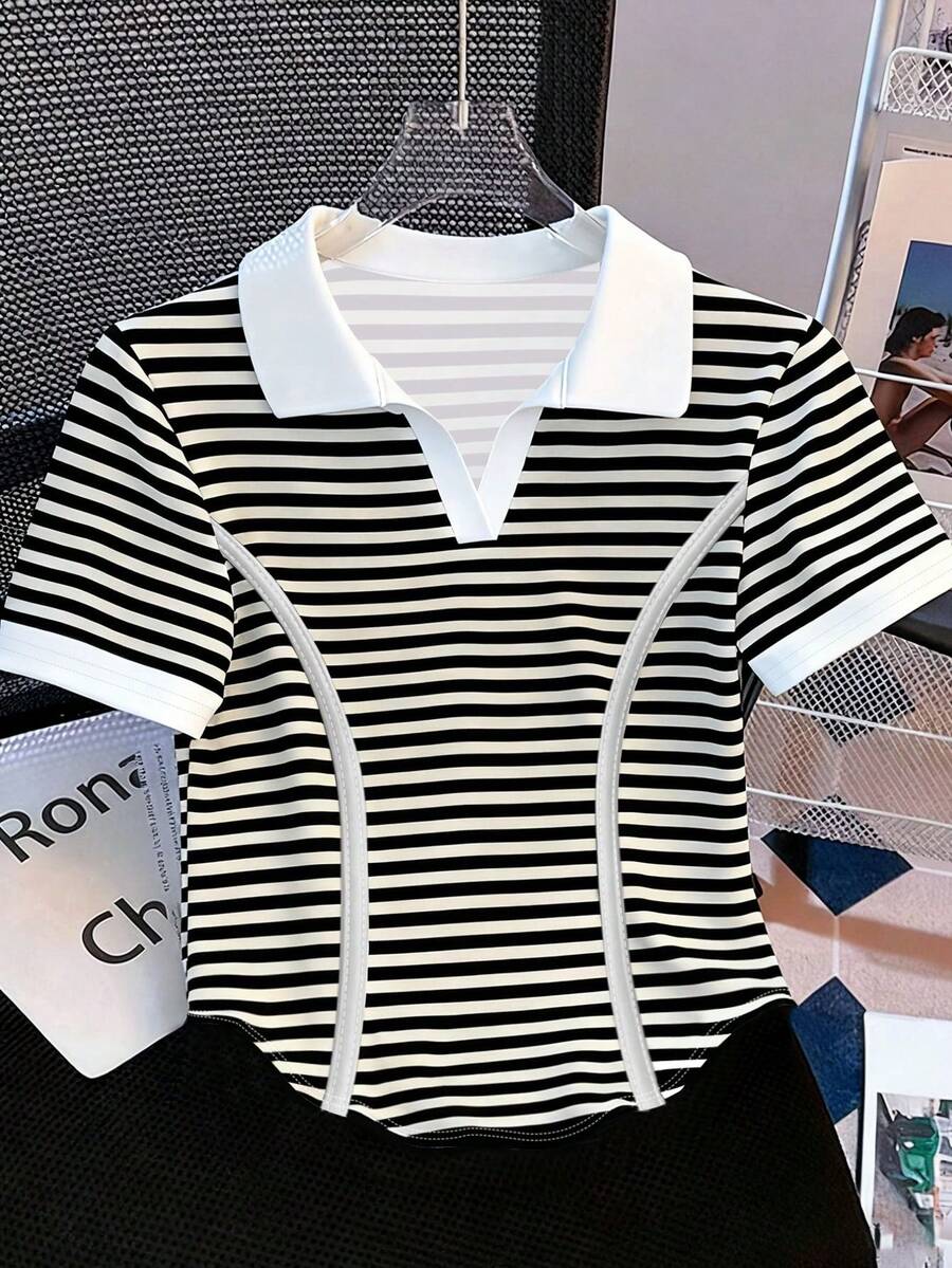 Lined For Added Warmth:No Color:White Neckline:Notched Sleeve Length:Short Sleeve Length:Regular Fit Type:Slim Fit Fabric Elasticity:Slight Stretch Material:Knitted Fabric Composition:95% Polyester, 5% Elastane Care Instructions:Machine wash or professional dry clean Sheer:No |