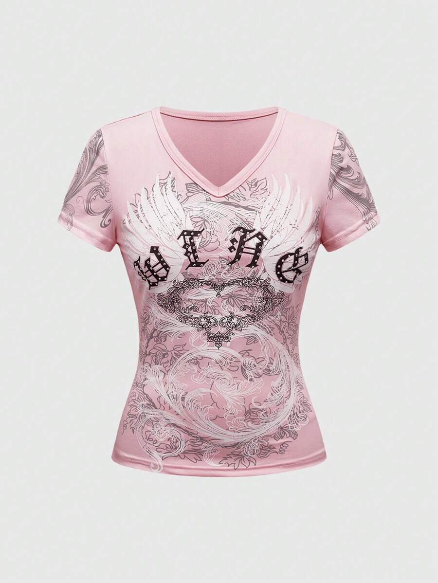 Pattern Type:Floral, Animal, Heart, Letter, Textured Pattern Sleeve Type:Regular Sleeve Hem Shaped:Regular Festivals:Halloween Color:Pink Style:Casual Occasion:Stage & Concert Neckline:V neck Sleeve Length:Short Sleeve Length:Regular Fit Type:Slim Fit Fabric Elasticity:Slight Stretch Material:Knitted Fabric Composition:95% Polyester, 5% Elastane Care Instructions:Machine wash or professional dry clean Sheer:No |