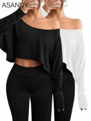 2pcs Women Off Shoulder T-Shirts, Loose Casual Tops, Everyday & Homewear Set, Autumn/Winter Spring | Lotusrite.comFeatures:Great quality, Comfortable |