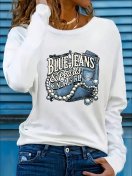 Women\\\'s Long Sleeve T-Shirt Blue Jeans & Pearls Kinda Girl Graphic Tee Casual Comfortable Cotton Top For Everyday Wear | Lotu