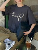Women\\\'s Summer Round Neck Short Sleeve T-Shirt, \\\"Grateful\\\" English Letter Print, Loose Casual Versatile Short Sleeve To