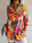 Women's Casual Long Sleeve Colorful Print Blouse, European & American Style, Spring/Autumn 2025 Vacation