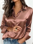 Women\\\'s Satin Blouse, Business Casual Button-Up Shirt With Collar Design, Elegant For Office And Casual Wear, Suitable For Au