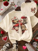 Women\\\'s Casual Valentine\\\'s Day Bow Graphic T-Shirt, Relaxed Crew Neck Short Sleeve Tee, Suitable For Spring/Summer | Lotus