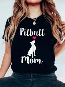 Womens Pitbull Mom T-Shirt - Pit Bull Dog Mama Gift Casual Printed 100% Cotton Women T Shirt, Summer Tshirts Short Sleeve Graphi