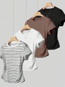 Women\\\'s Casual Striped Patchwork Short Sleeve T-Shirt, Summer | Lotusrite.com