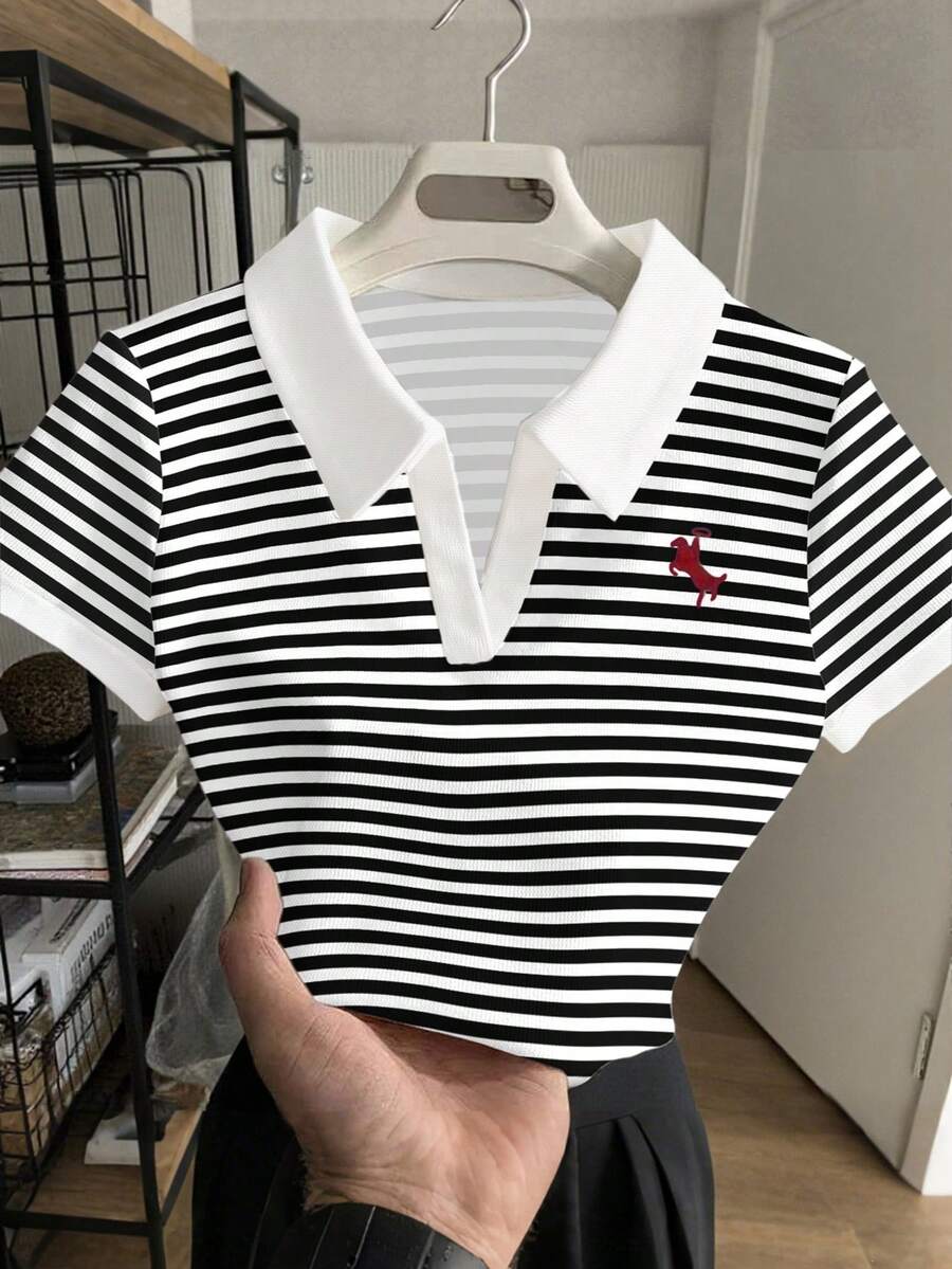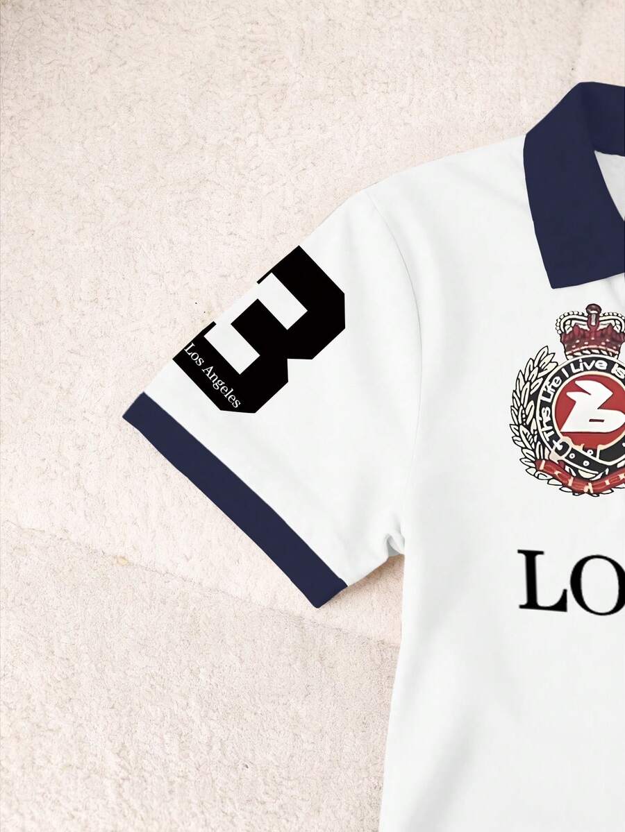 Details:Contrast Binding Body:Unlined Neckline:Collar Pattern Type:Christmas Sleeve Type:Drop Shoulder Style:Casual Occasion:School Hem Shaped:Regular Lined For Added Warmth:No Festivals:Halloween Color:White Sleeve Length:Short Sleeve Length:Regular Fit Type:Slim Fit Sheer:No Fabric Elasticity:Slight Stretch Material:Knitted Fabric Composition:100% Polyester Care Instructions:Machine wash or professional dry clean |