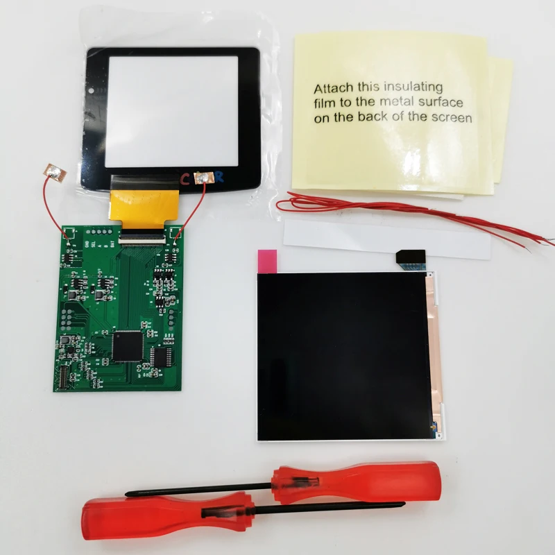 Super OSD RETRO PIXEL IPS Larger LCD SCREEN KIT Backlight Brightness Touch sensor For GameBoy Color For GBC Q5 IPS LCD KitThe mainboard of the console is not included. A black customised GBC glass screen lens was included. Larger Display area. Two touch sensors: Touch sensor 1: for the brightness adjustment Touch sensor 2: for the Color model adjustment by short touch &Retro pixel Effect ON/OFF by 3 seconds long time touch. Replace the old, broken or cracked LCD screen with backlight. 1. Built-in OSD Menu!2.The display area is 15% larger than the original.3. Retro pixel Effect ON/OFF.4. Image position adjustable. No need to worry about the misalignment of the LCD screen in the installation.5. Battery level display On/OFF6. Wide View angle up to 178 degree7.You need welding 3 wires to Control the OSD Menu.****You don't need to do any soldering if you don't want to use the OSD Menu! Because it can change the brightness, color modes and Retro Pixel via touchpad.****Package included: 1 * LCD kits with GBC cutomised glass screen lens 1* Double-sided Tape 3x wires