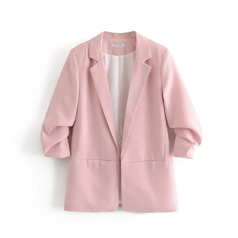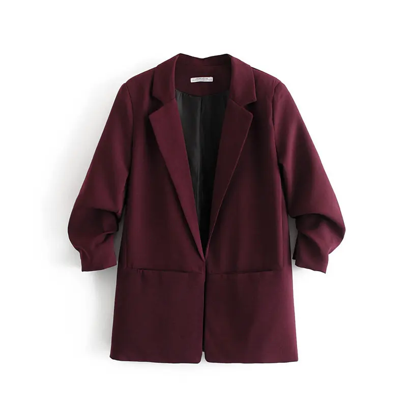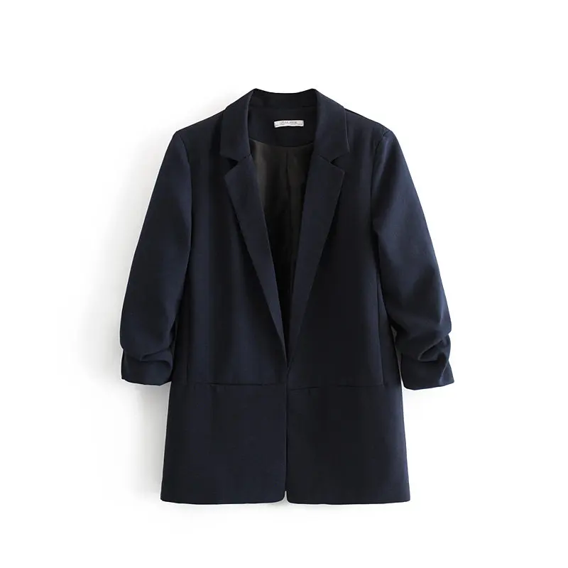 TMODA734 2022 Chic Ruched Cuff Mid Long Blazer with Lining Woman Shawl Collar Slim Fit Suit Casual Jacket Coat Outerwear|Blazer  41005002139441971