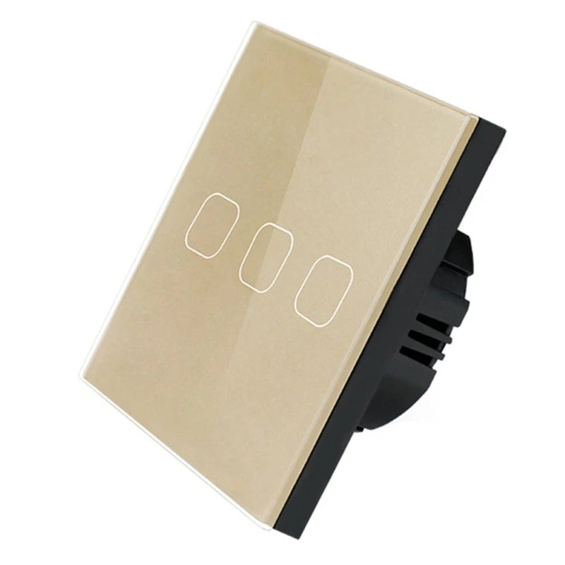 Type: Touch Switch Color: Black/White/Silver/Gold Panel material: Glass Panel Panel Size: 86 Type: 86mm*86mm ✔***Operational Voltage: 90 ~ 250V ✔***Load Power: 0 ~ 300W / gang ✔If it is used for LED or energy saving bulb, Power load should be less than 100W/gang.