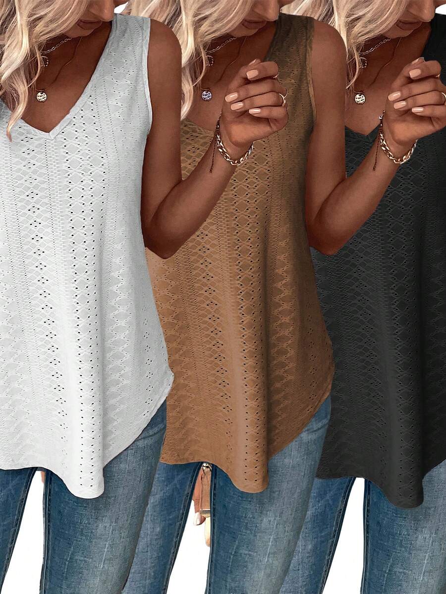 Details:Asymmetrical, Eyelet Embroidery Body:Unlined Neckline:V neck Style:Casual Type:Tank Occasion:Street Hem Shaped:Asymmetrical Features:Great quality Lined For Added Warmth:No Pockets:No Festivals:Independence Day Color:Multicolor Length:Regular Fit Type:Loose Fabric Elasticity:Medium Stretch Material:Knitted Fabric Composition:95% Polyester, 5% Elastane Care Instructions:Machine wash or professional dry clean Sheer:Semi-Sheer Number of Pieces:3 Piece Set |