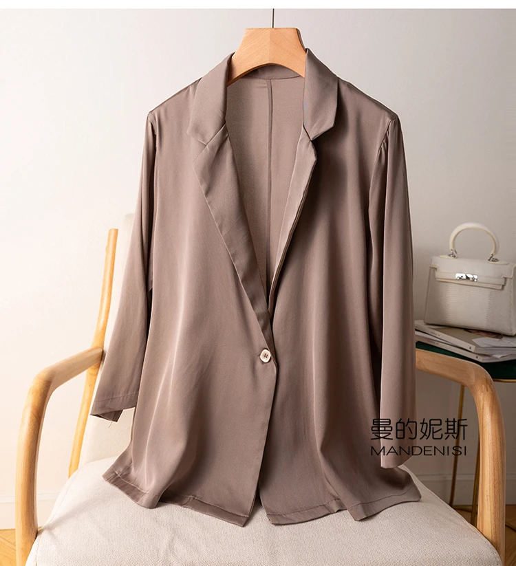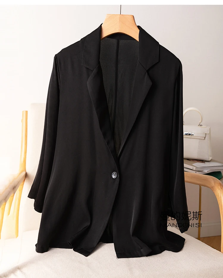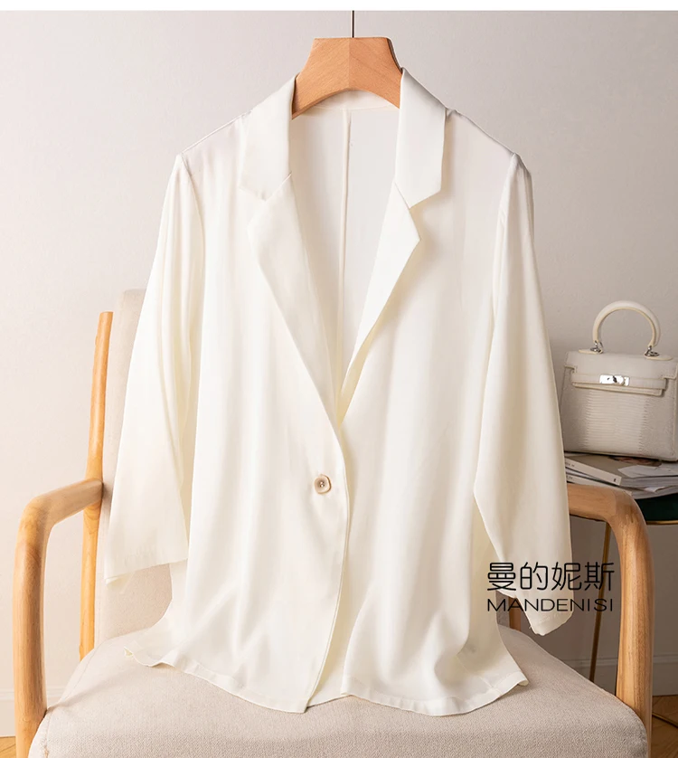 Women's 95% Mulberry Silk 5% Spandex 19 momme Black White One Button Blazer Jacket office work M L XL JN647|Blazers| - Off