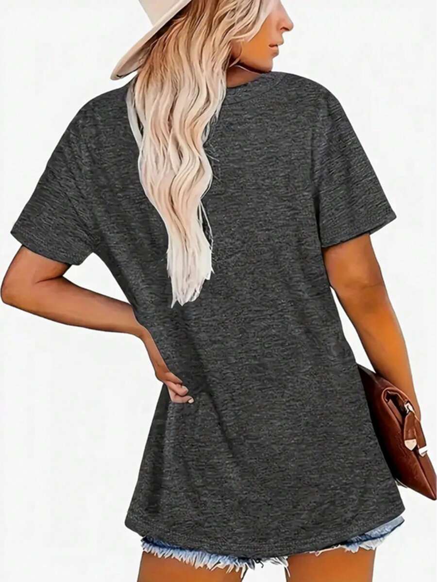 Pattern Type:Cartoon, Figure, Geometric, Graphic, Letter, Striped, Slogan, Textured Pattern Sleeve Type:Regular Sleeve Hem Shaped:Regular Pockets:No Festivals:Halloween Color:Dark Grey Details:Appliques Style:Casual Occasion:Daily Neckline:V neck Sleeve Length:Short Sleeve Length:Regular Fit Type:Regular Fit Fabric Elasticity:Medium Stretch Material:Polyester Composition:95% Polyester, 5% Elastane Care Instructions:Machine wash, do not dry clean,wash with the soft detergent Sheer:No |