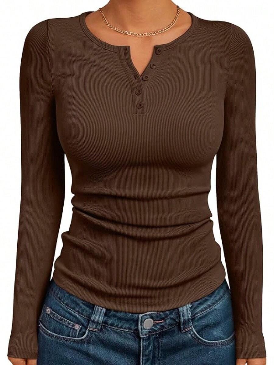 Details:Button, Rib-Knit Neckline:Round Neck Pattern Type:Plain Sleeve Type:Regular Sleeve Style:Casual Occasion:Daily Hem Shaped:Regular Festivals:Independence Day Color:Dark Grey Sleeve Length:Long Sleeve Length:Regular Fit Type:Slim Fit Fabric Elasticity:Slight Stretch Material:Knitted Fabric |