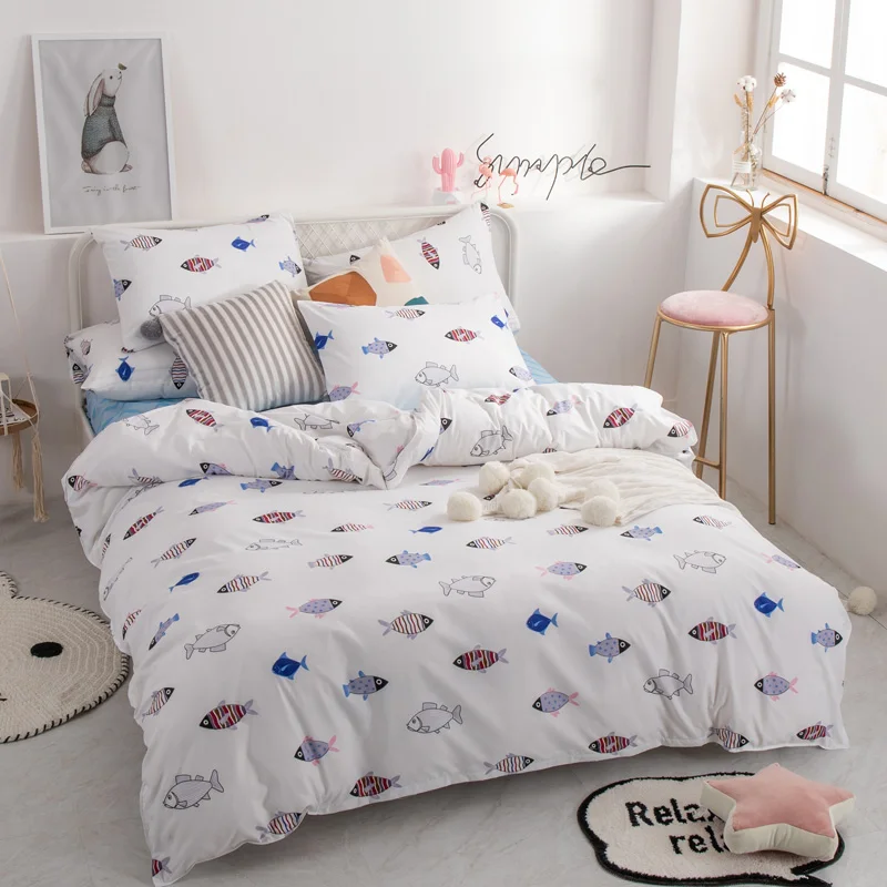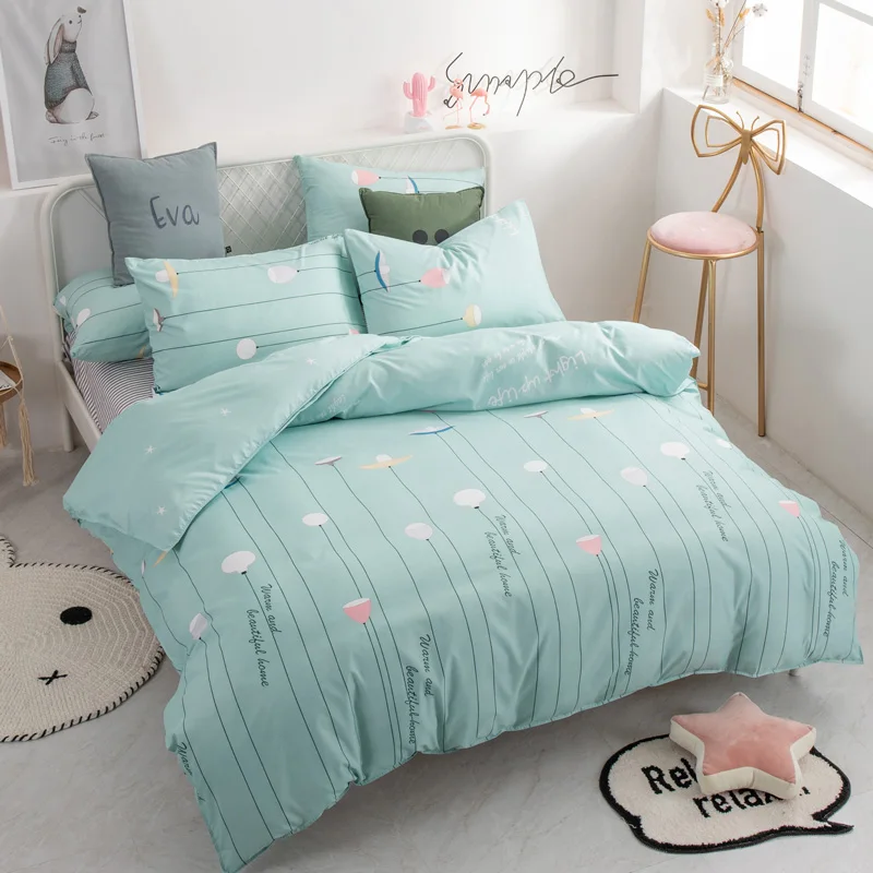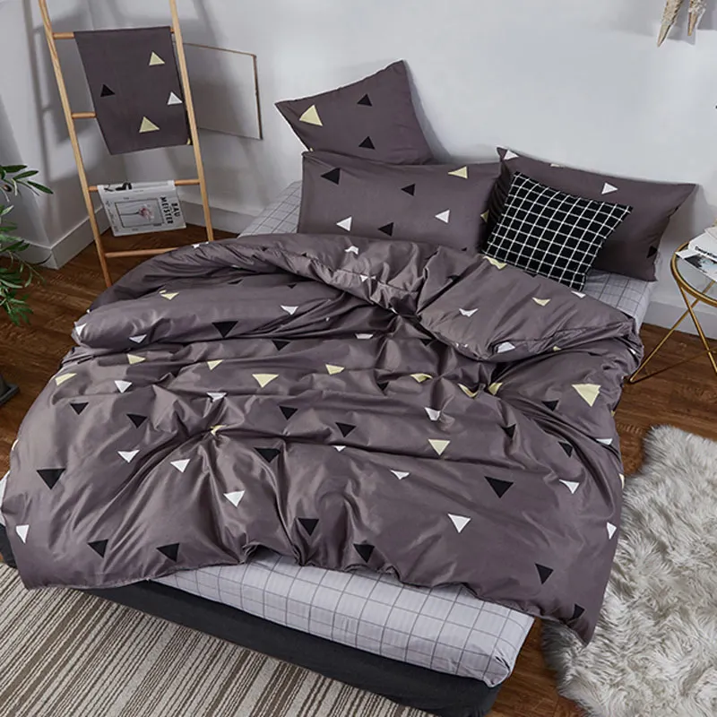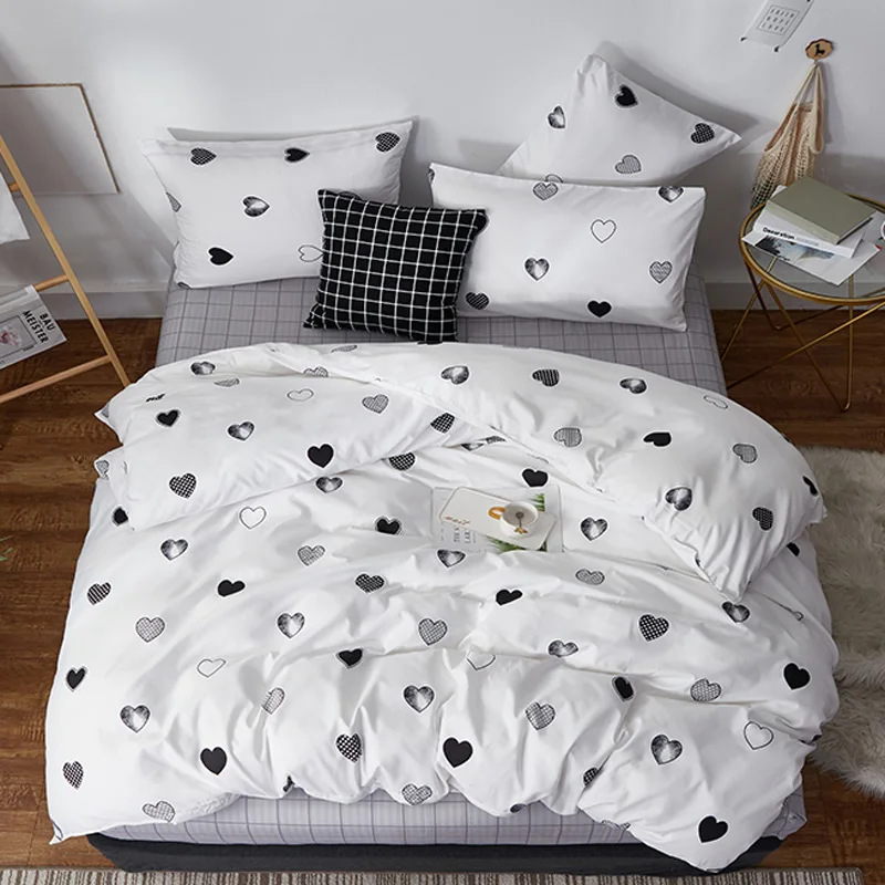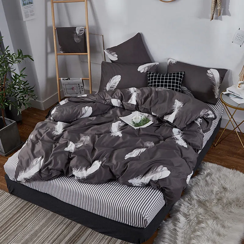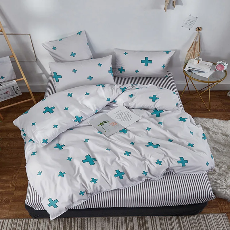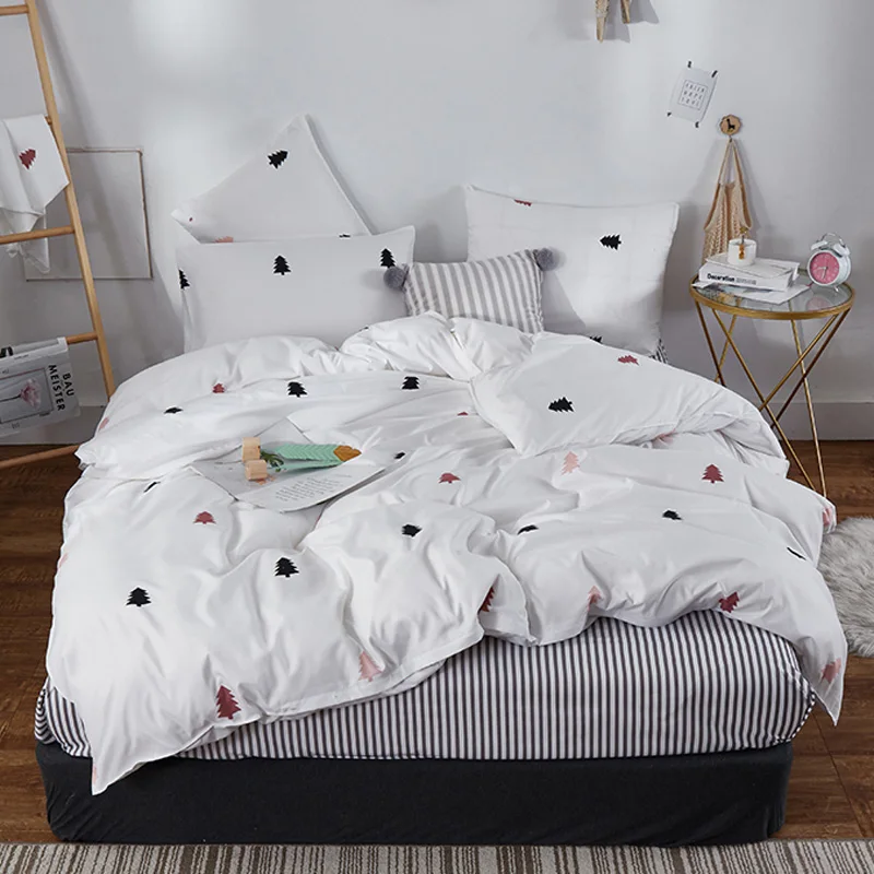 Juego de cama de moda YAXINLAN de algodón puro A / B con patrón de doble cara, sábana de simplicidad, funda de edredón, funda de