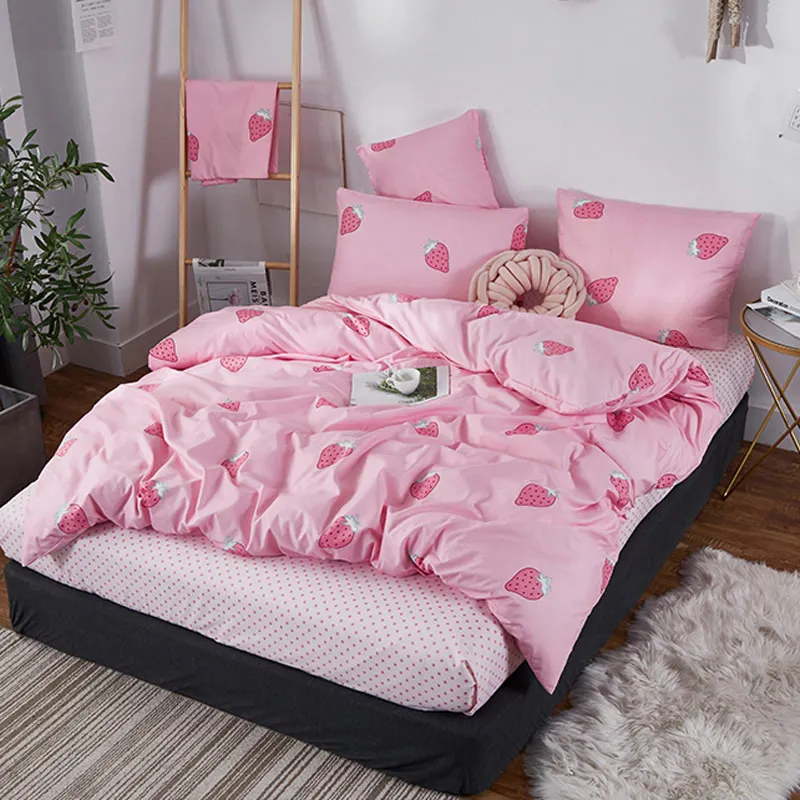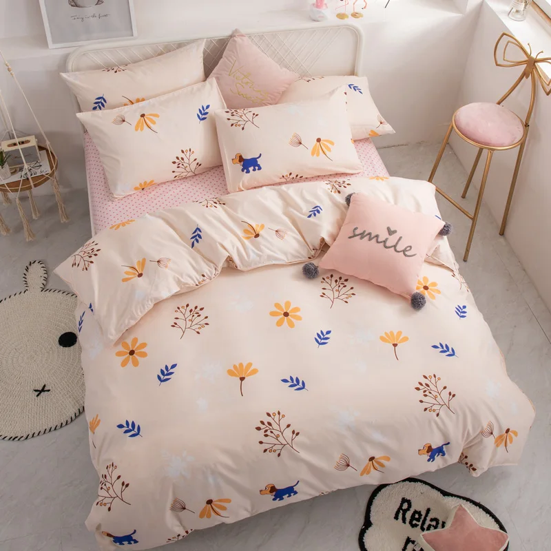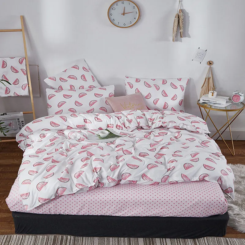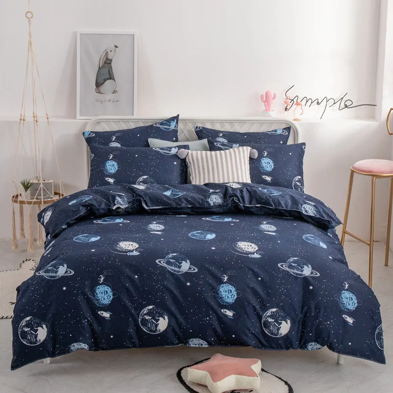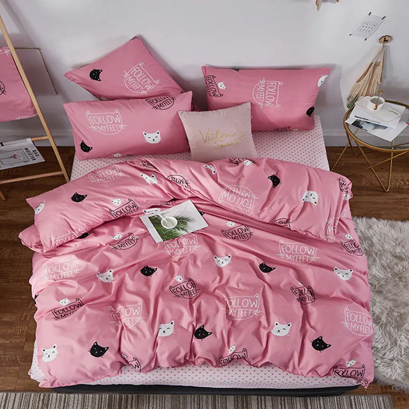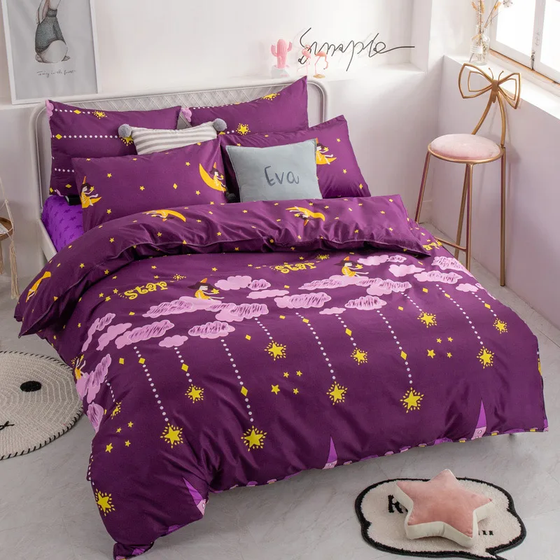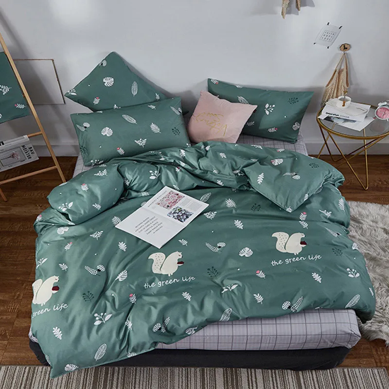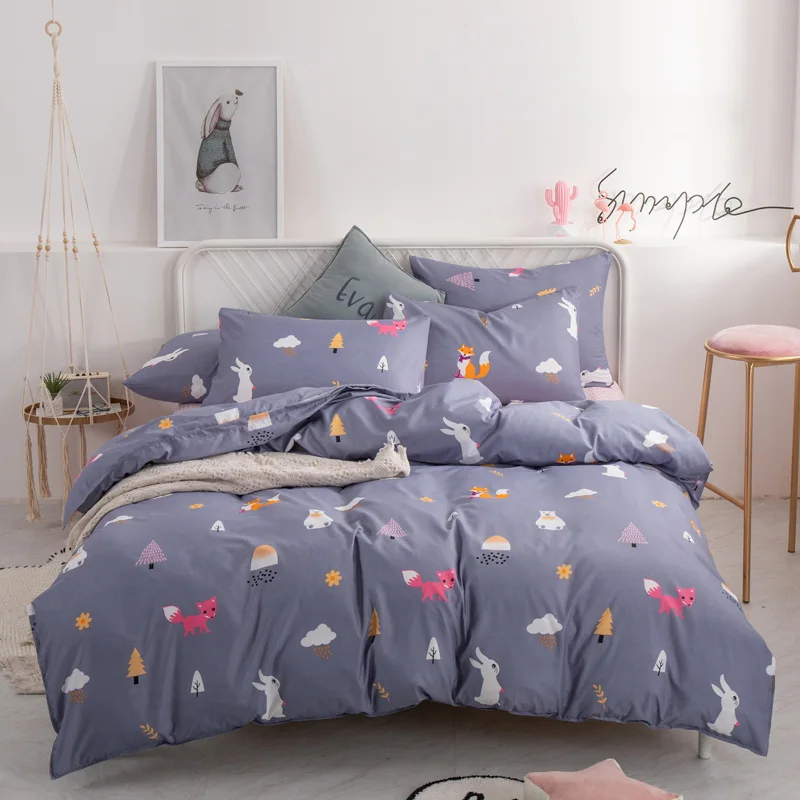 Juego de cama de moda YAXINLAN de algodón puro A / B con patrón de doble cara, sábana de simplicidad, funda de edredón, funda de