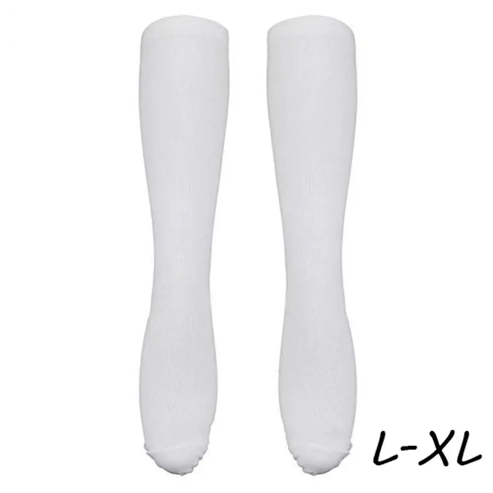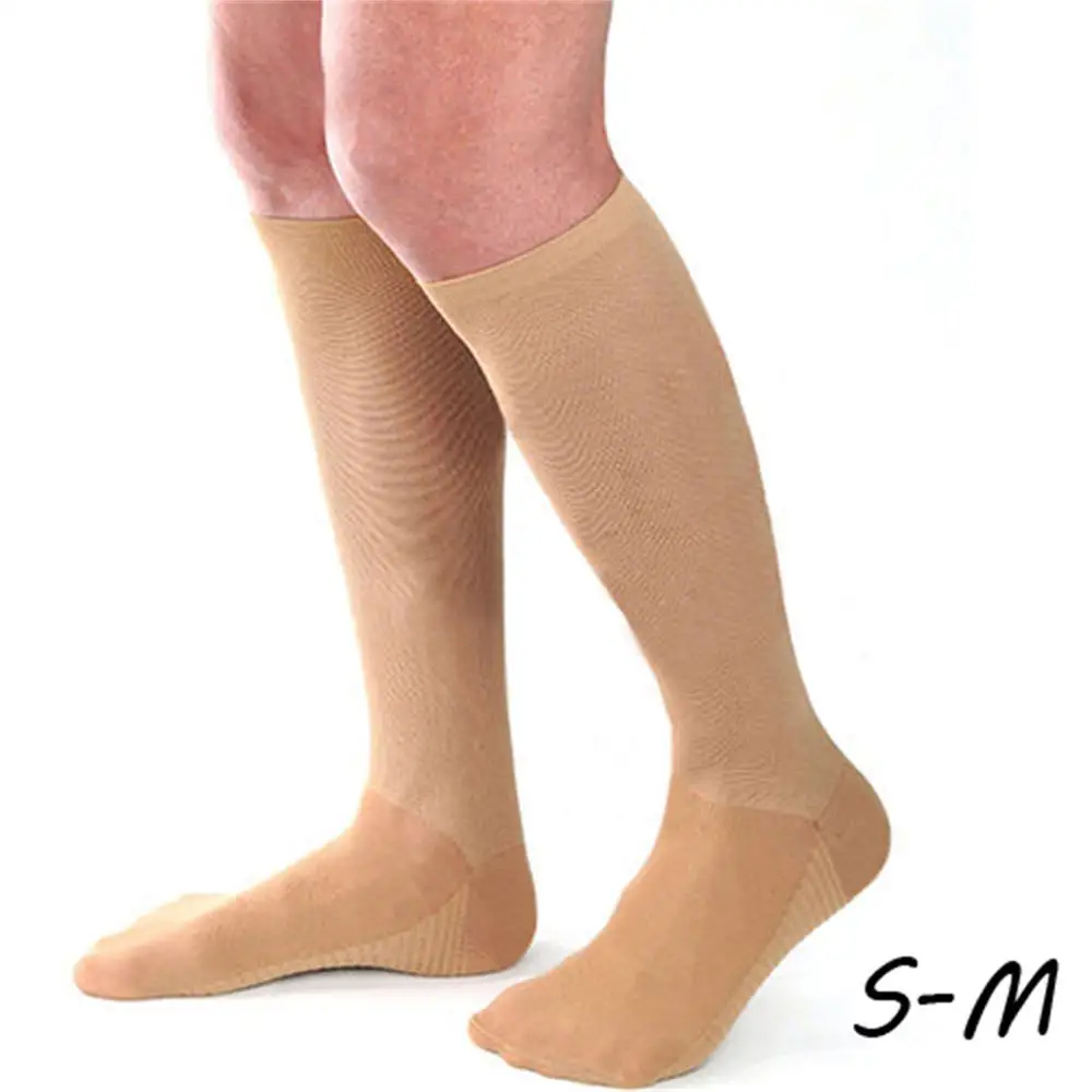 Specifications: Comfortable balloon toe and heel pocket. Thin, lightweight nylon material. Non-binding, breathable, comfort top band. Anti-fatigue compression sock, soothe tired, achy legs and feet! Use graduated compression, maximum at the ankle that gradually decreases up the leg, to soothe, massage and energize your legs and feet. Comfortable and discreet, thin enough to fit in any shoe. Helps to reduce swelling, boost circulation, control odors, soothe and massage achy legs and feet, relieve symptoms of varicose veins. Easy to put on, great for everyday use. Unisex. Perfect for being on your feet or sitting all day and traveling! Type: Compression Socks Gender: Unisex Material: Nylon Function: Shaping Style: Fashion, Casual Seasons: Spring, Summer, Autumn, Winter Features: Knee Stockings, Soft and Comfortable S/M Size Tube Length: 34cm/13.39" (Approx.) L/XL Size Tube Length: 37cm/14.57" (Approx.) Notes: Due to the light and screen setting difference, the item's color may be slightly different from the pictures. Please allow slight dimension difference due to different manual measurement. Package Includes: 1 Pair of Compression Socks