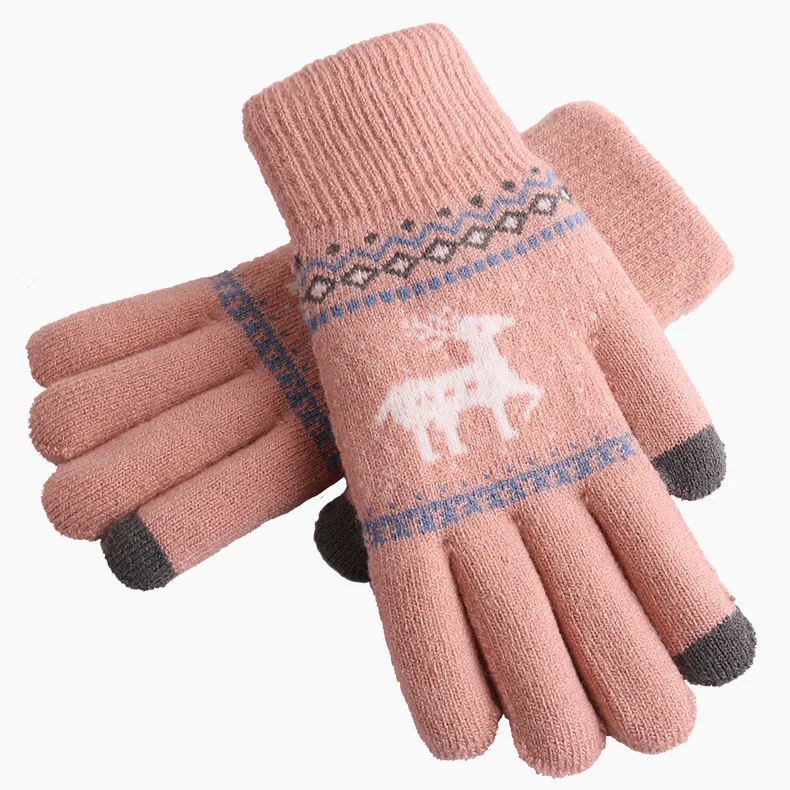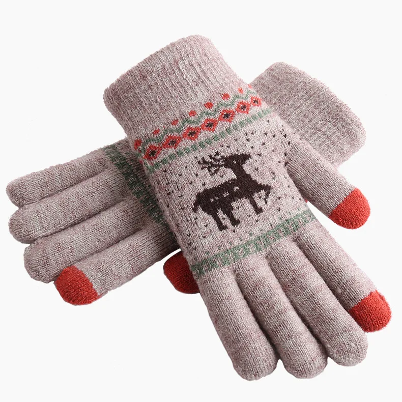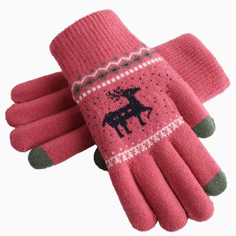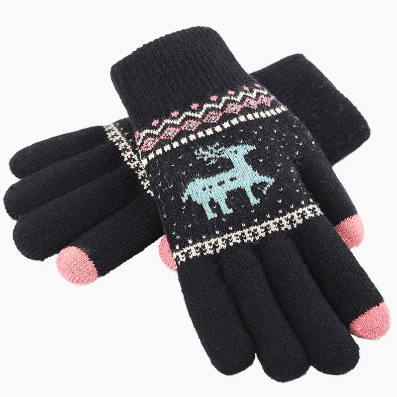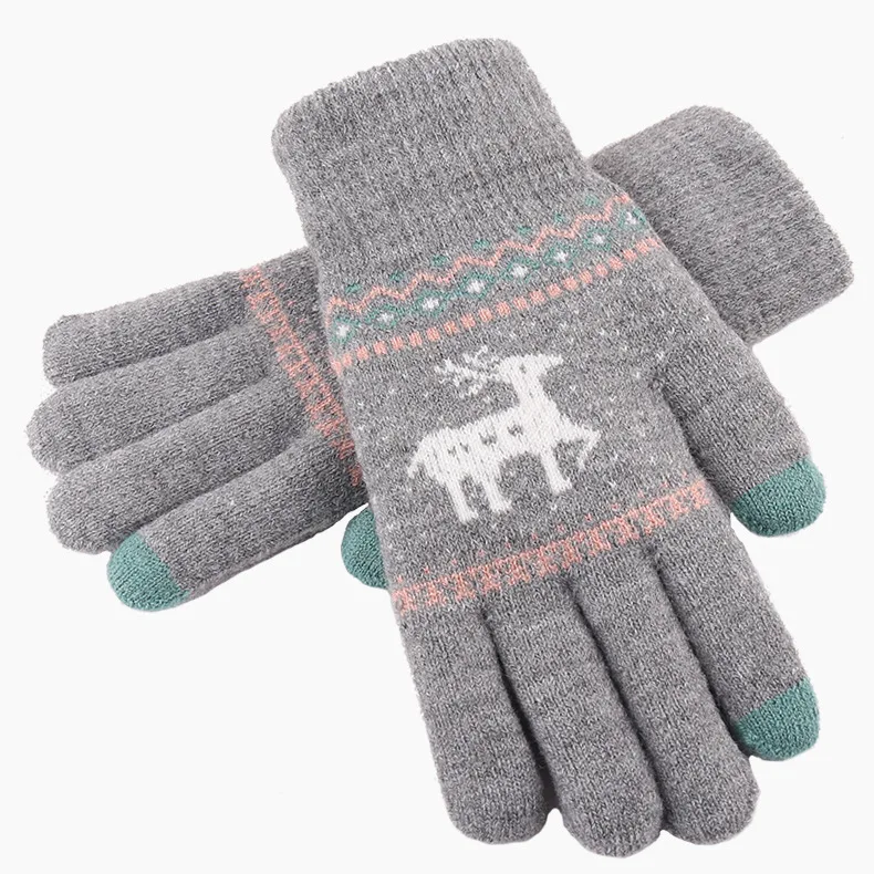 2021 Autumn Winter Women's Gloves Cartoon Deer Wool Touch Screen Cold Gloves Unisex Knitted Double Thicken Warm Driving Glov  81005003057854426