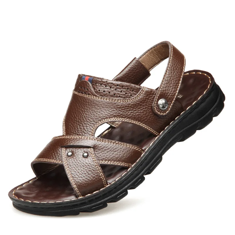 2021 Hot Sale Waterproof Non Slip Sandals Cow Leather Men's Soft Bottom Wear Resistant Slippers Dual Purpose Breathable Sand  81005002164557356