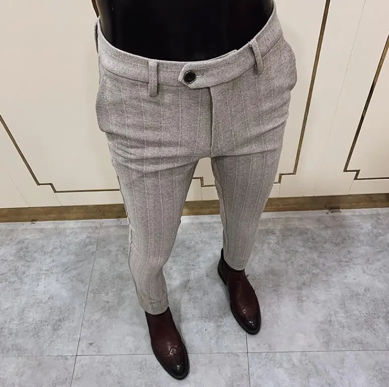 2021Autumn Winter Men Striped Dress Pants Woolen Warm Business Formal Social Suit Pants Casual Slim Fit Cigarette Trousers 28 38  81005002619874693