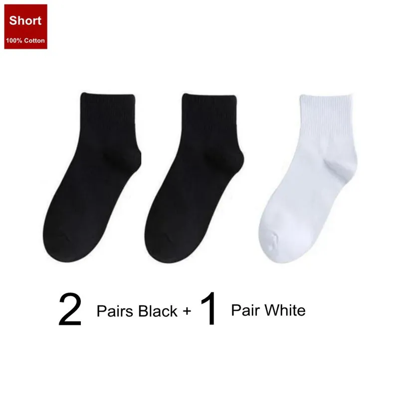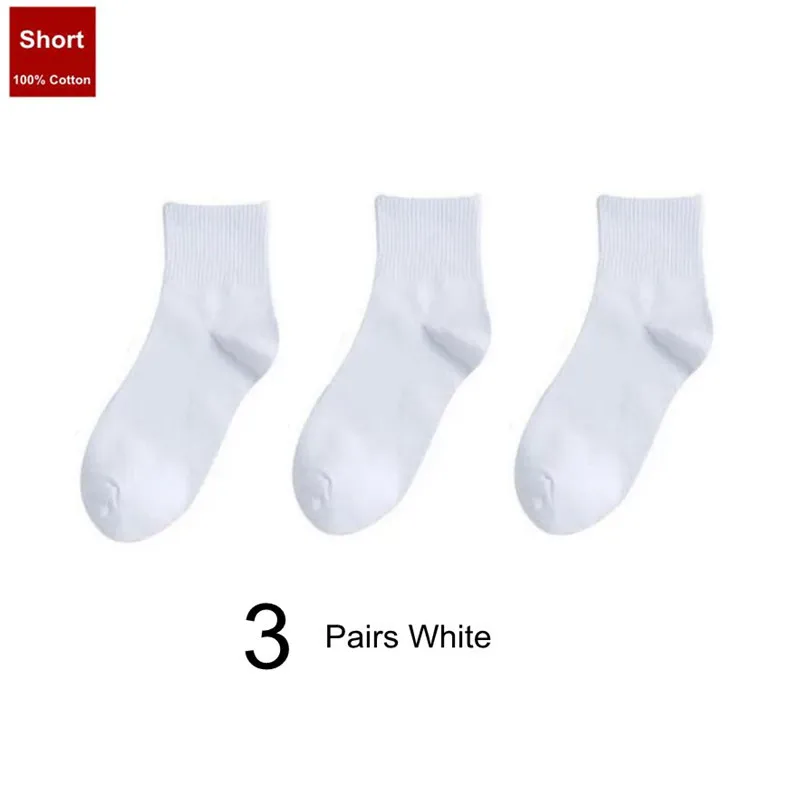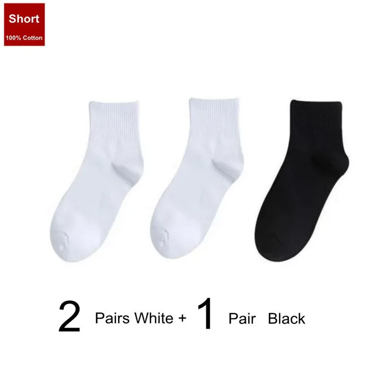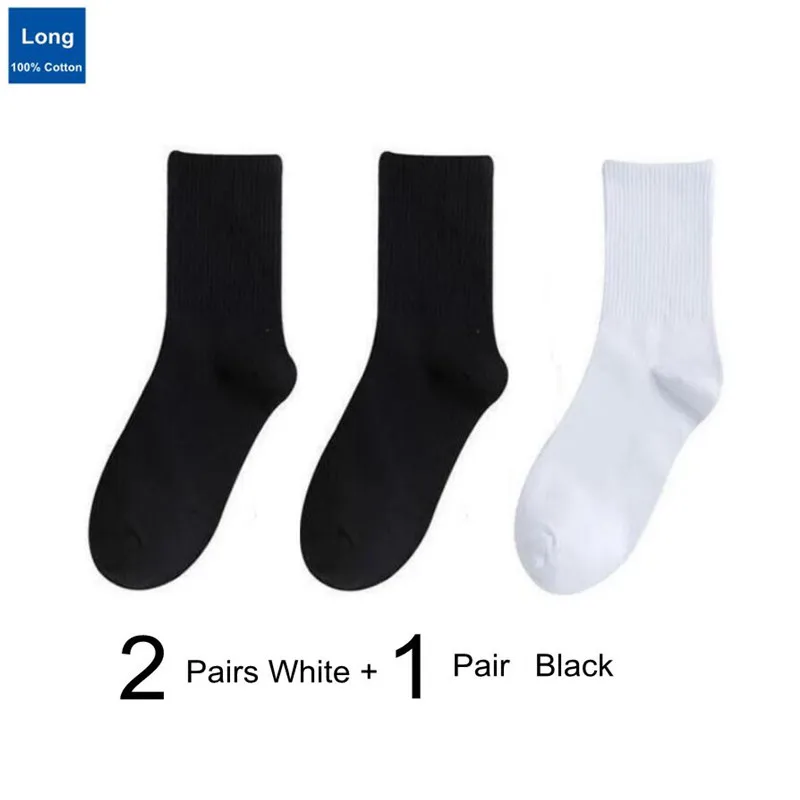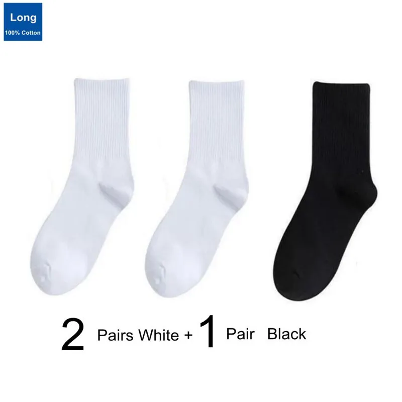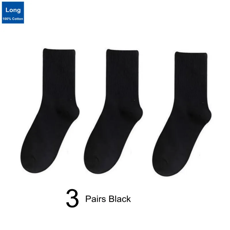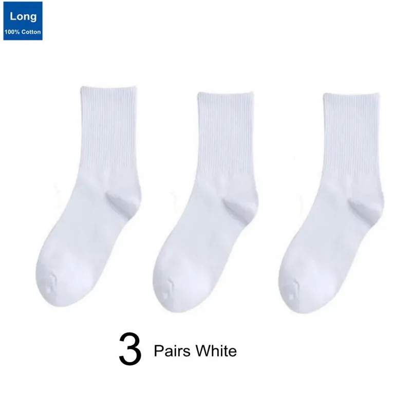 3 Pairs Solid Color Black/White Men/Women Sports Socks College Style Simple Middle Tube 100% Cotton Socks for Students