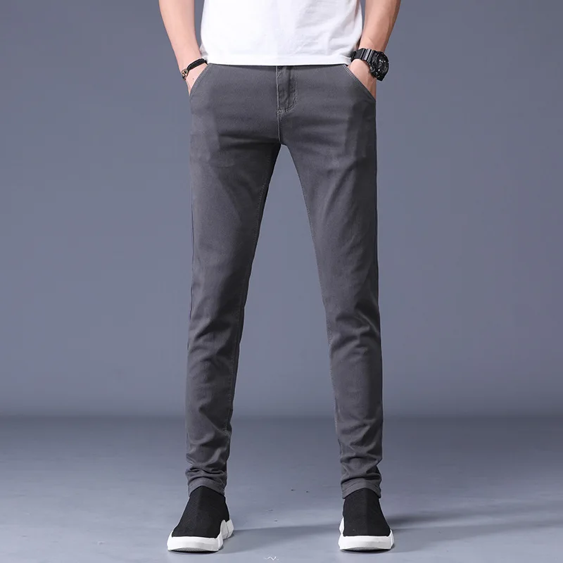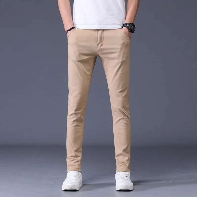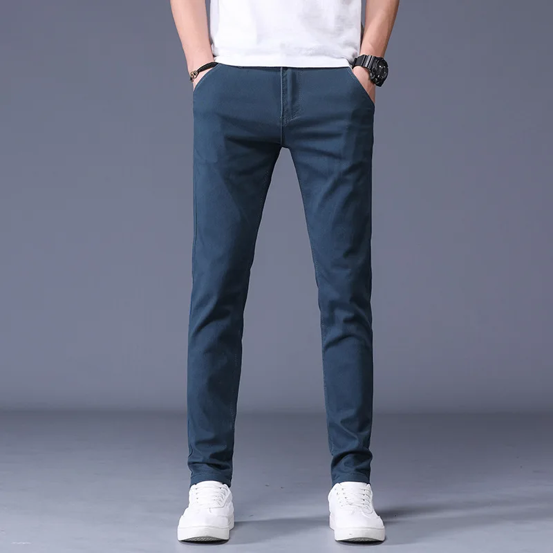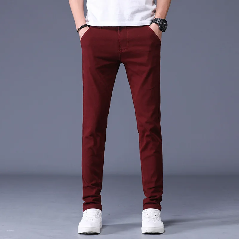 6 Color Men Casual Pants 2020 Autumn and Spring New Cotton Straight Elastic Trousers Brand Red Blue Grey Khaki Large Size 38|Ski
