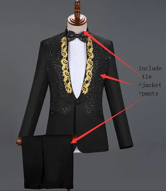 Autumn Slim Printed Wedding Men Suit Jacket Set For Marriage High Quality Stage Performance Host Formal Black Men Blazer|Blazers  84001344852653